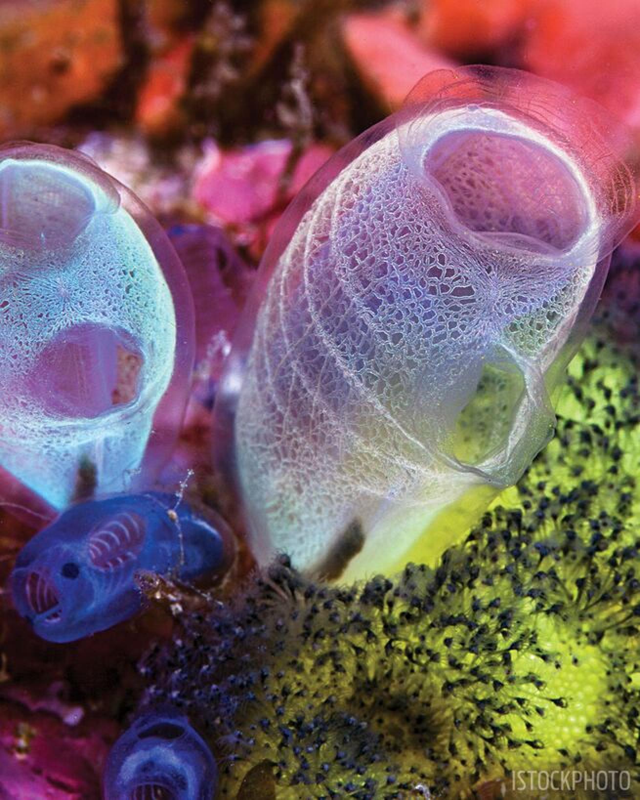 11 ) One group of tunicates called pyrosomes comprises a free-floating colony of tunicates that form the shape of a huge sock and can reach 60 feet in length.