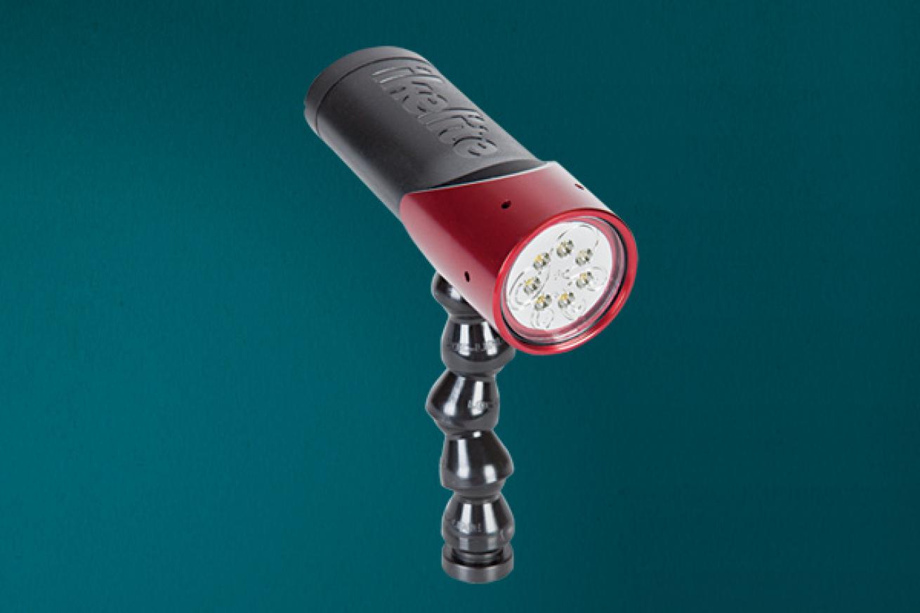 Carrie GarciaThe Vega LED video light is a video/still light, a focus light, and a backup dive light in a cool and airplane-friendly package. The warm, diffused light has a 70-degree beam angle and is adjustable up to 2,000 lumens.