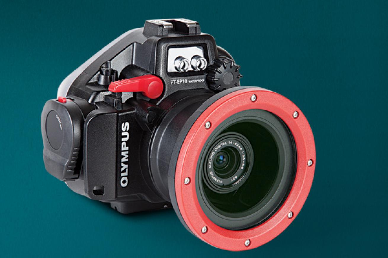Carrie GarciaFully waterproof to 140 feet, the tough polycarbonate PT-EP10 housing is designed specifically for the Olympus E-PL5 camera, and is compatible with a range of lenses. The flash connectors enable two strobes.