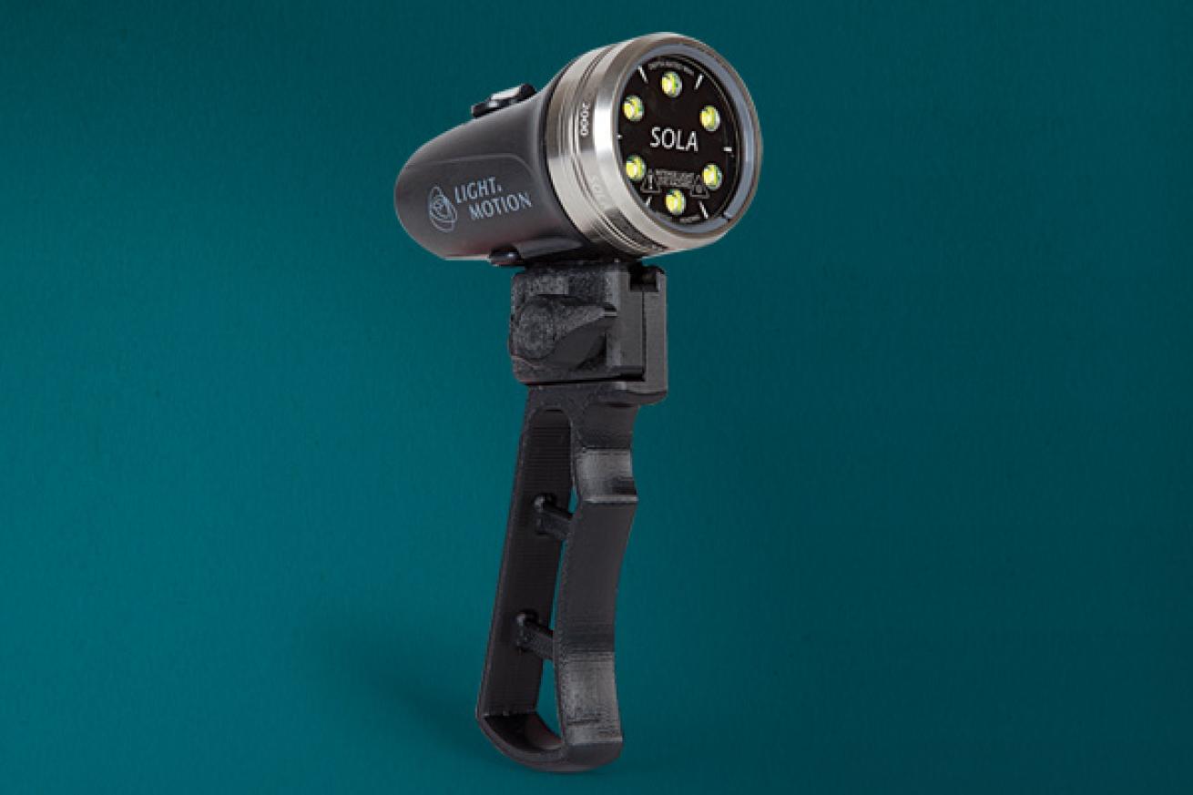 Carrie GarciaCompatible with 2012 Sola models, the pistol grip makes it easy to utilize the power of the Sola — right in your hands. The mount clamps onto the Sola (or lights with similar connections) via the standard 1-inch ball or 1/2-inch lock-line connection found on the Sola.