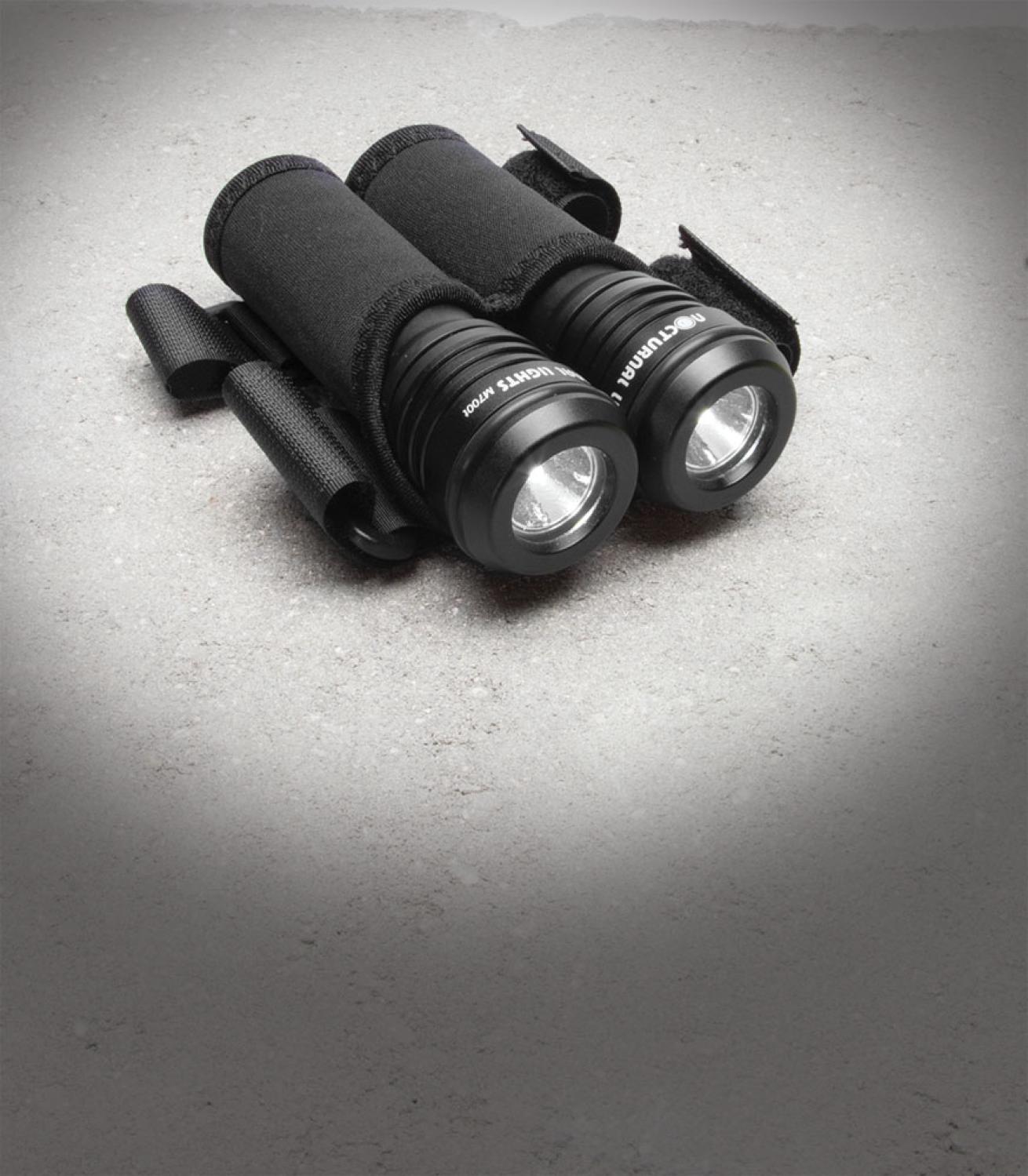 Each M700T light delivers 700 lumens of water-penetrating power. The neoprene hand mount allows for hands-free use.