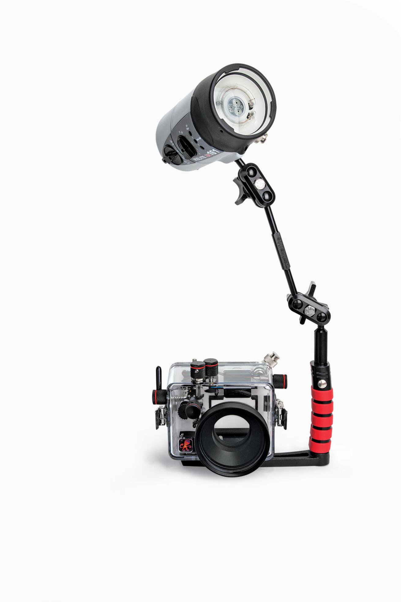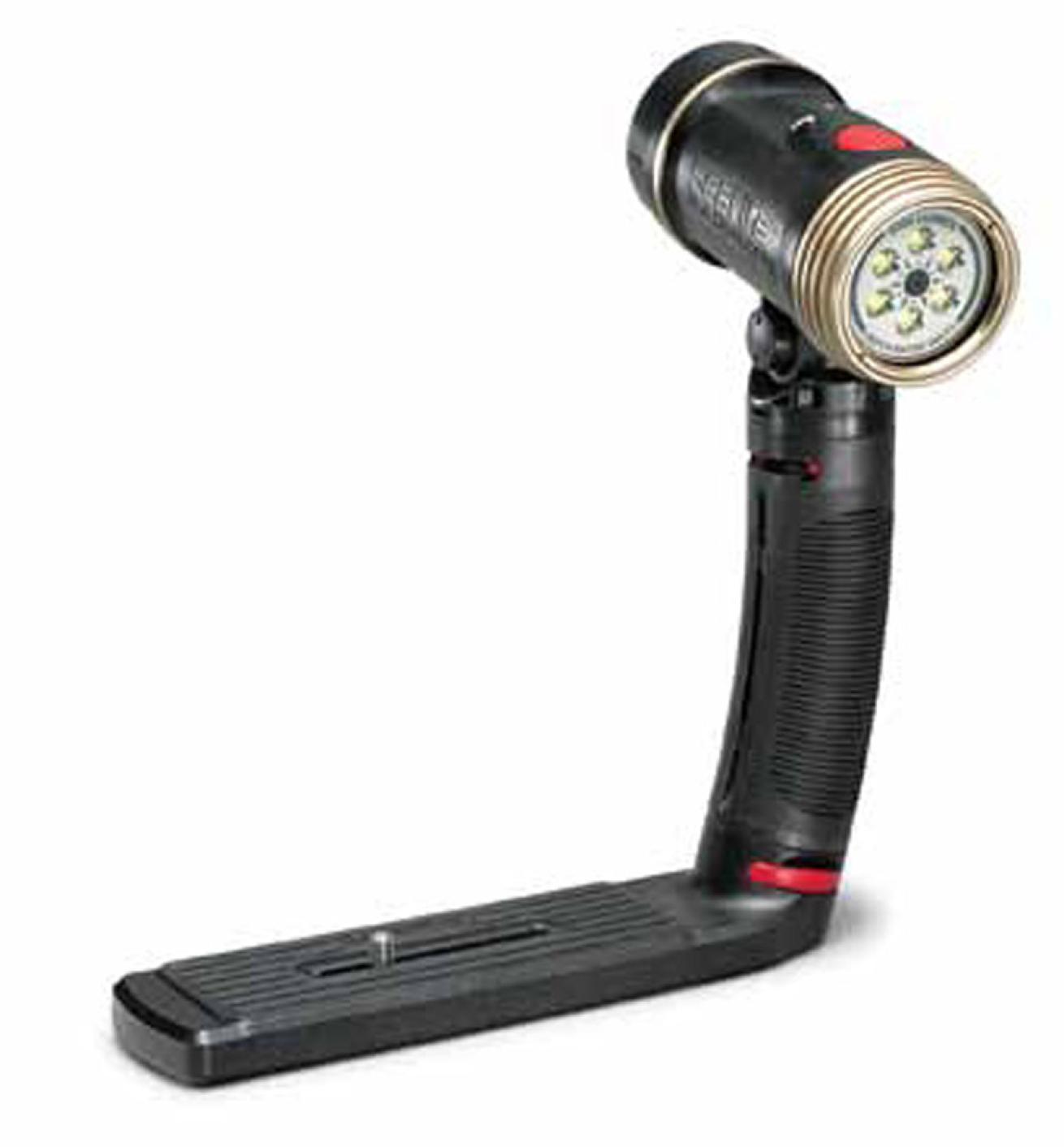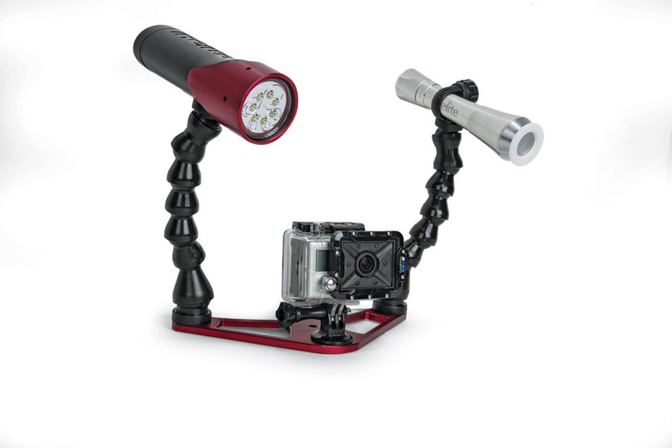 This handy package pairs the dual-power 5-inch light with a 12-inch arm and tray that provides a compact but secure base for virtually any small underwater camera or video housing.