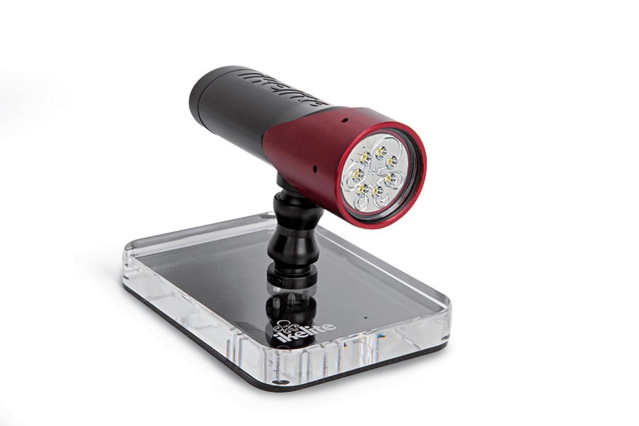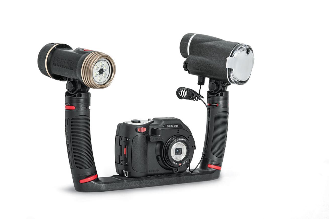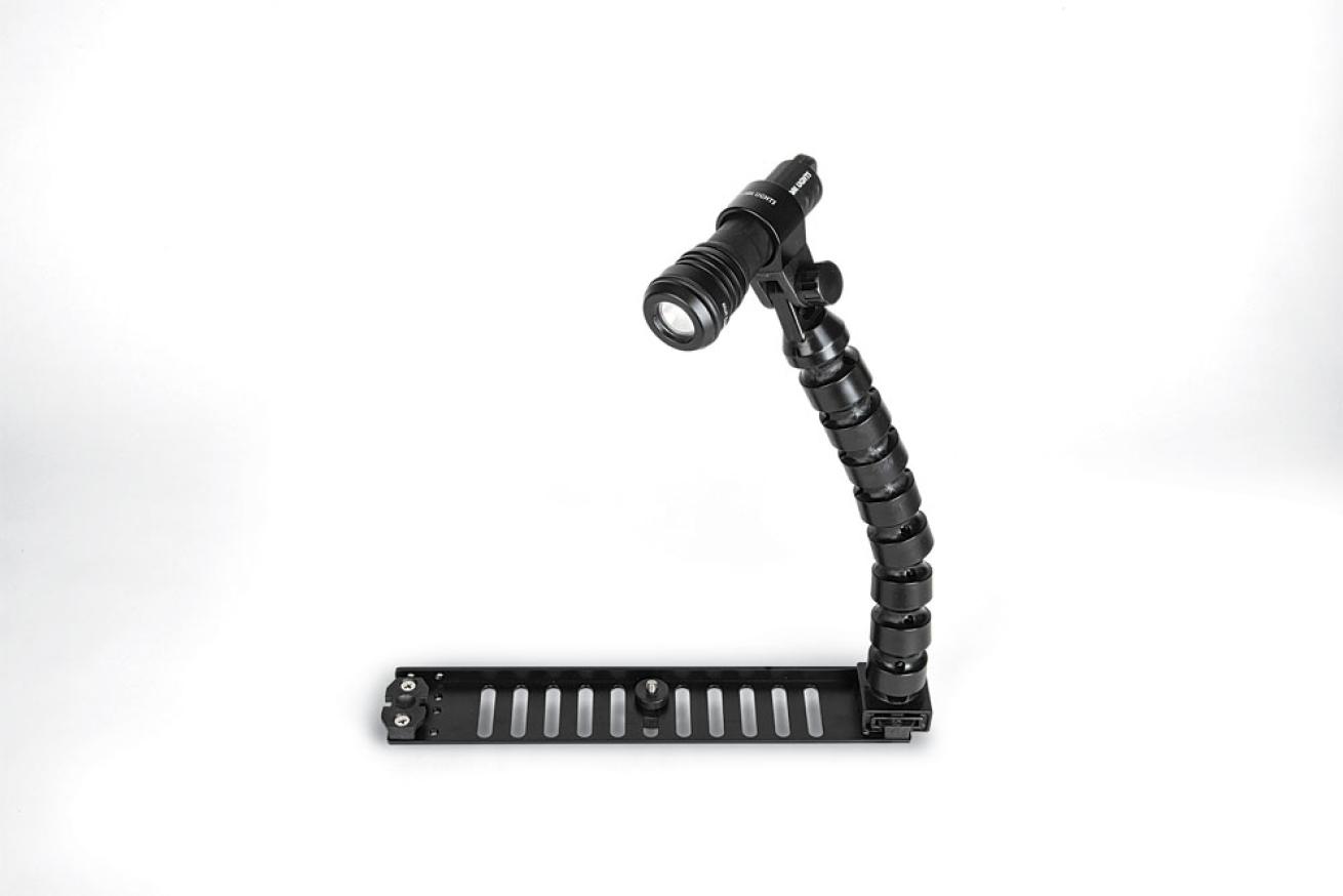 This handy package pairs the dual-power 5-inch light with a 12-inch arm and tray that provides a compact but secure base for virtually any small underwater camera or video housing.