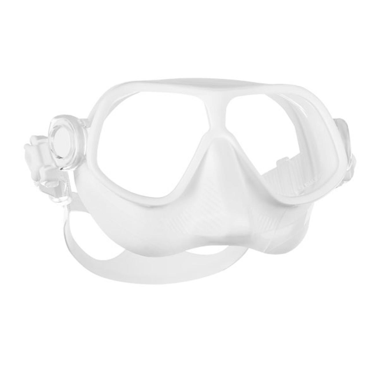 The Steel Comp mask from SUBGEAR was created specifically for freedivers. Every part of its design, from the frameless construction and small skirt to the compact mask strap and buckles, helps reduce drag and internal volume. The trimmed-down skirt traps a minimal amount of air against the diver’s face, making it easier to equalize. The frameless design also allows the twin lenses to press in slightly as depth increases, reducing internal volume even further. The Steel Comp uses scratch resistant, flat glass and the lenses sit close to the eyes, expanding the field of view. The streamlined mask straps allow precise adjustments and the compact, rotating buckles are easily disconnected. The Bottom Line: SUBGEAR’s Steel Comp mask keeps volume and drag to a minimum so freedivers can get the most out of every breath.