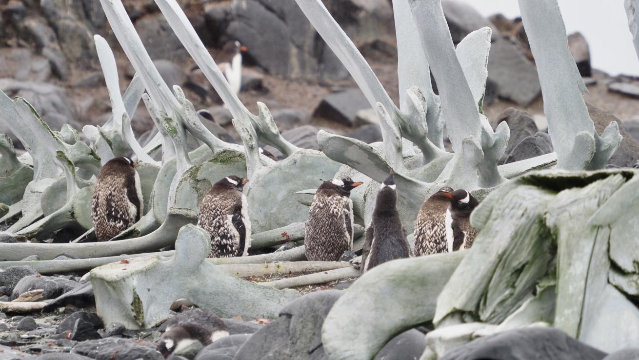 Courtesy Carol Cotton BlickenstorferJuvenile Gentoo penguins finding Refuge in the skeleton of a whale, Point Lockroy.