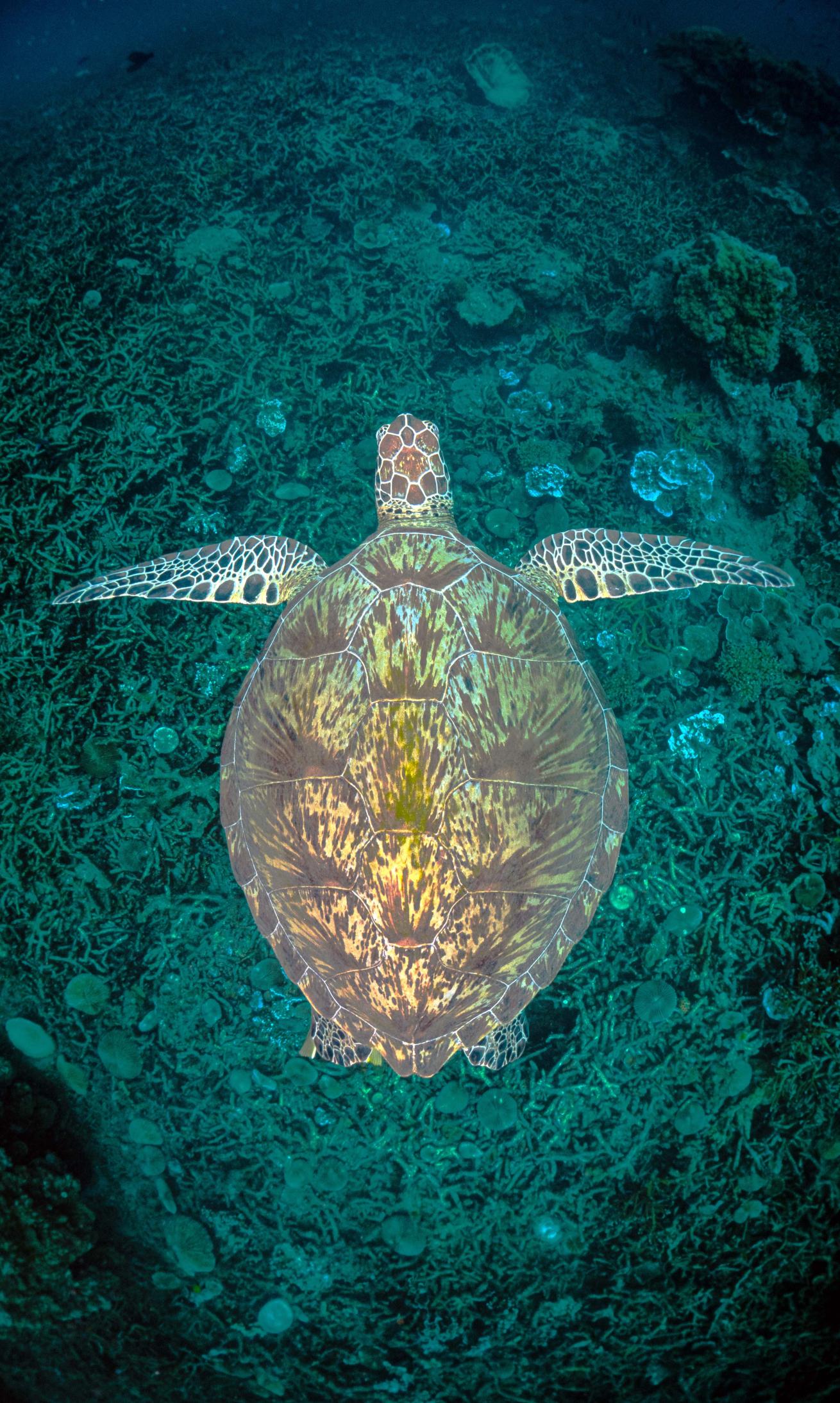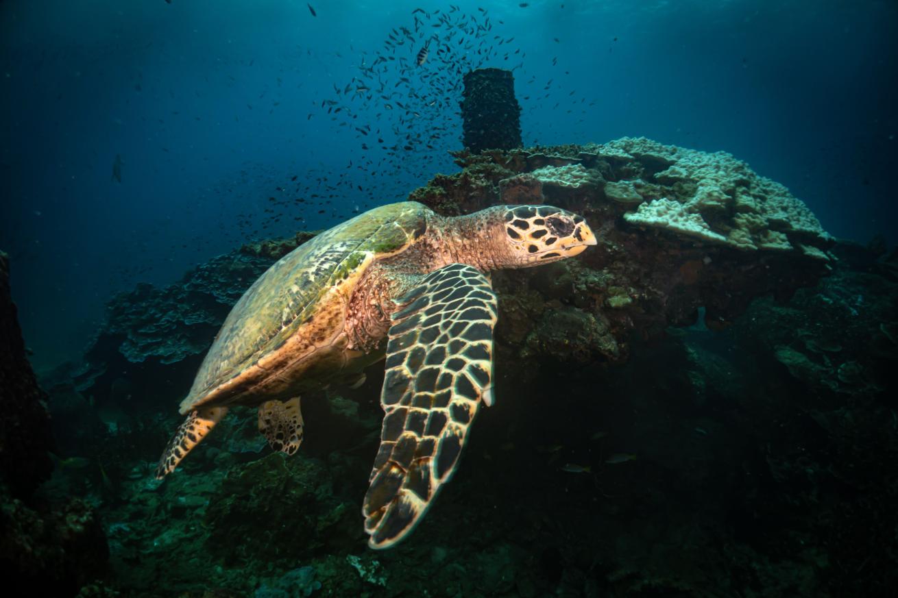 A beautiful hawksbill turtle found diving in the Perhentian Islands.