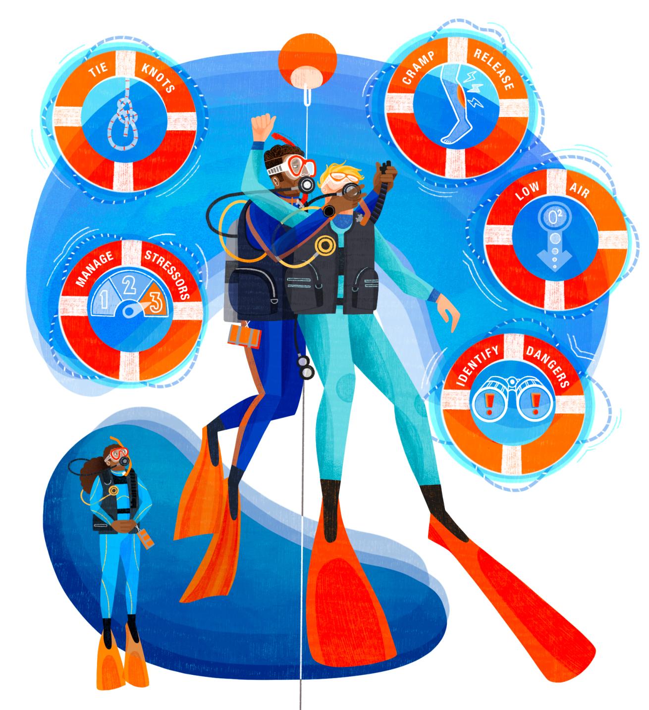 It’s commonly said that a diver can only manage three stressors before they risk reaching a tipping point. As a Rescue Diver, you’ll learn how to recognize those stressors—whether physical, mental or emotional—and help others work through challenges before they escalate.