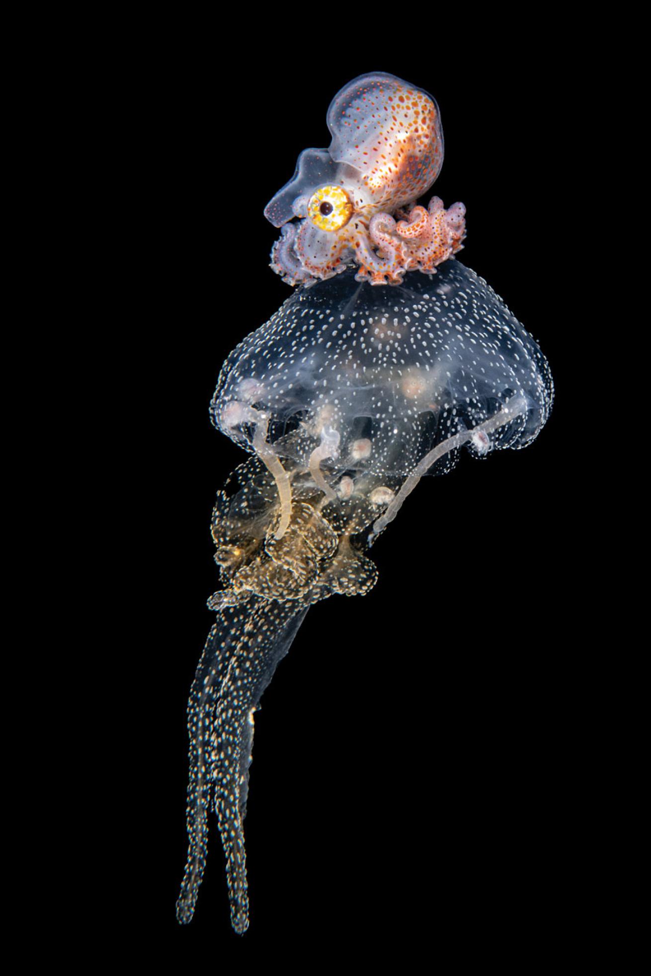 In the inky blackness of night, surrounded by the endless depths, the water glows with life. However, capturing the tiny marvels that appear on blackwater dives is a skill all its own—one that requires technical prowess combined with an artistic eye. From billowing rainbow appendages and fish sporting string lights to larval creatures hitching rides on each other, the winners of this category encapsulated the weird and otherworldly joy that can be found on blackwater dives and showed us the variety of life that persists where we least expect it.