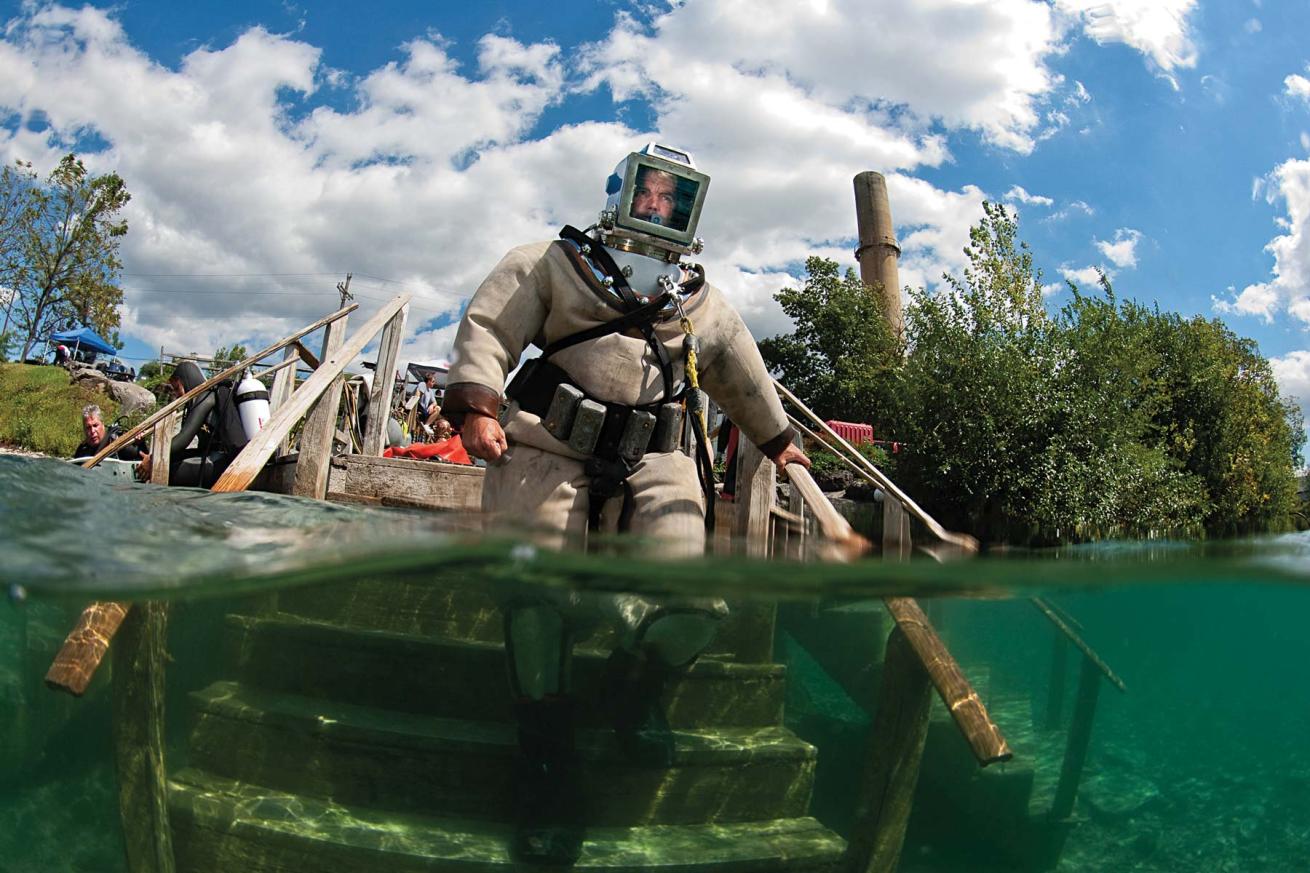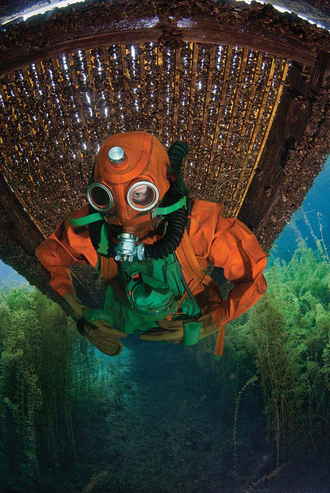 Short of putting yourself through a commercial-diving school, there aren't many places to experience diving in hard-hat gear. But if you're in decent physical condition and are able to carry at least 150 pounds into the water, this dive will reward you with a feeling akin to walking on the moon.