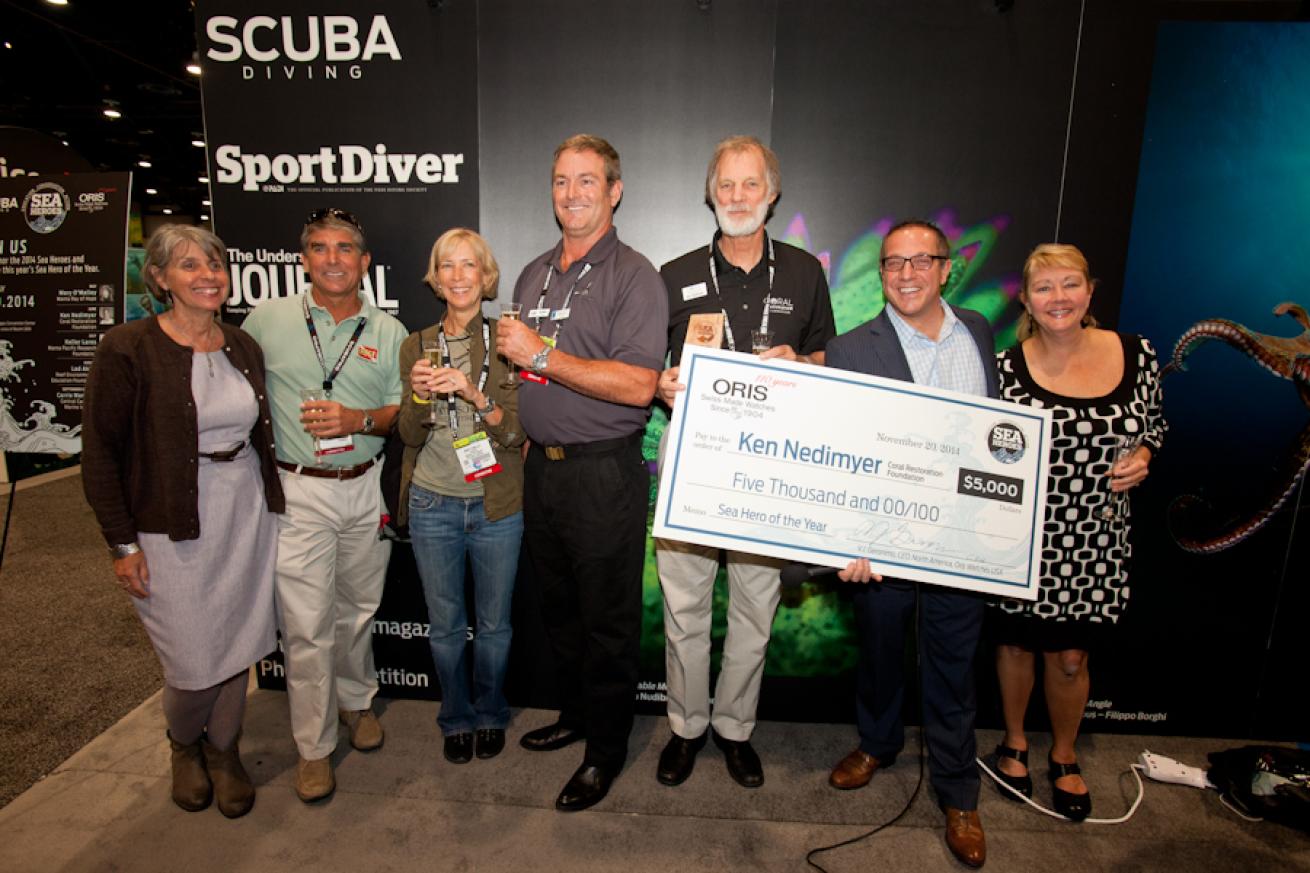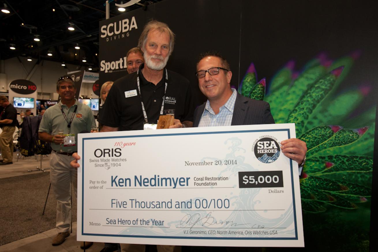 Nedimyer, Scuba Diving's June Sea Hero and president of the Coral Restoration Foundation, was selected from the five 2014 Sea Heroes as the Sea Hero of the Year, earning a $5,000 check from sponsor Oris Watches to further his work fostering coral nurseries.