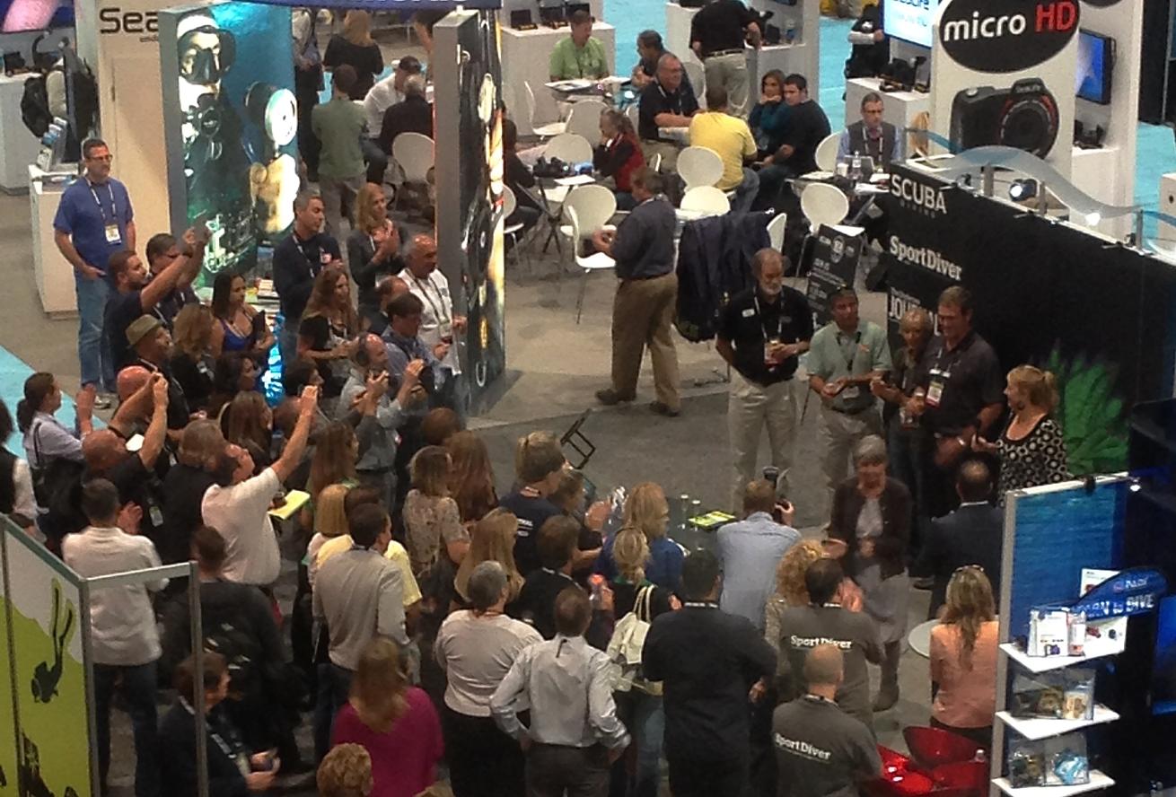 DEMA Show attendees at the Scuba Diving Magazine booth for the 2014 Sea Heroes Awards.