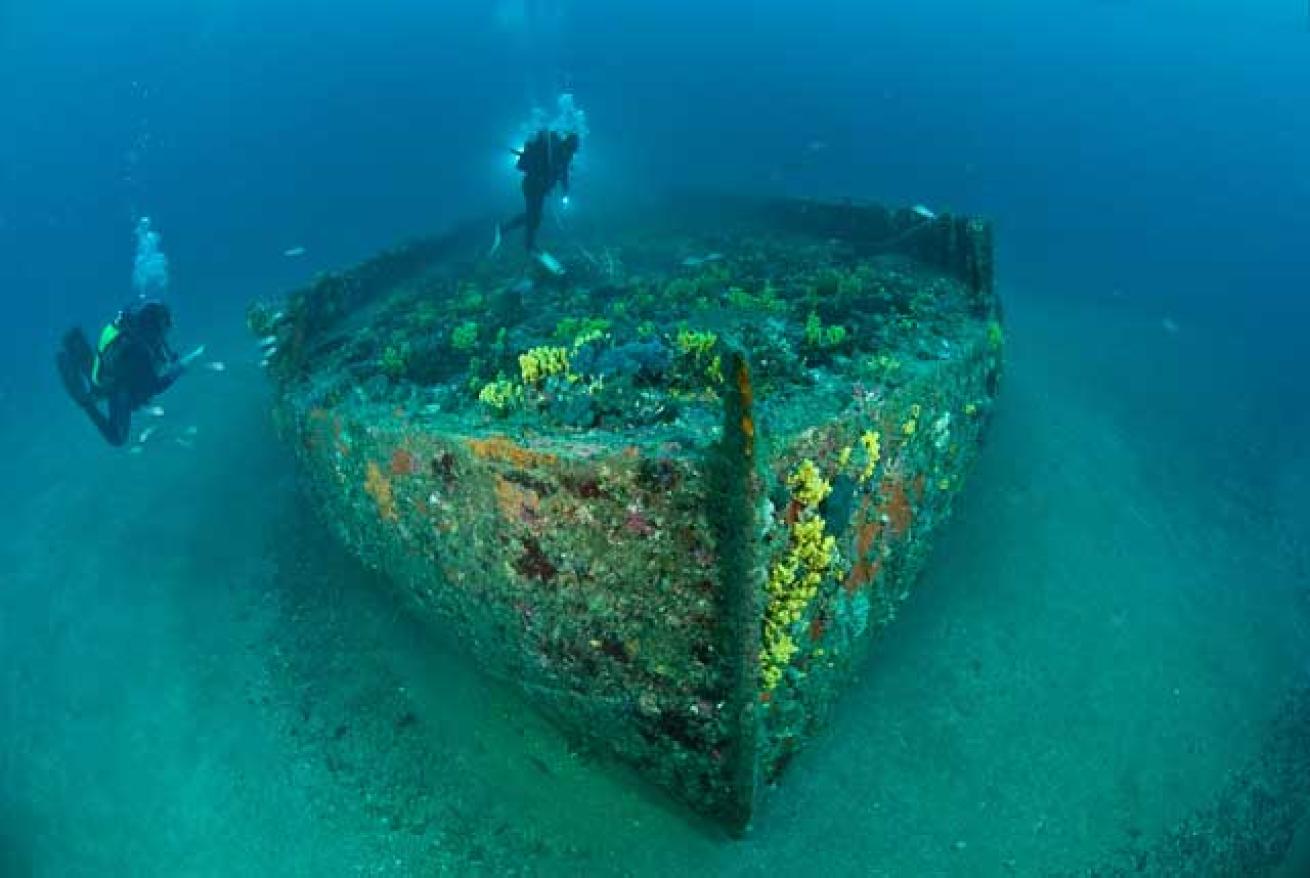 Divers explore a World War I shipwreck in Gallipoli, Turkey.