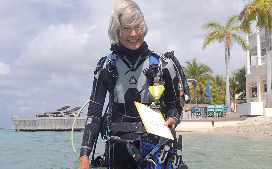 Cassandra Neal, 70, has conducted 370 survey dives for the nonprofit REEF since Bonaire’s borders closed due to COVID-19 last March.