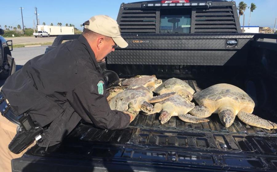 Cold-stunned sea turtles wash ashore in Florida and Texas after the water temperature falls below 50 degrees Fahrenheit.
