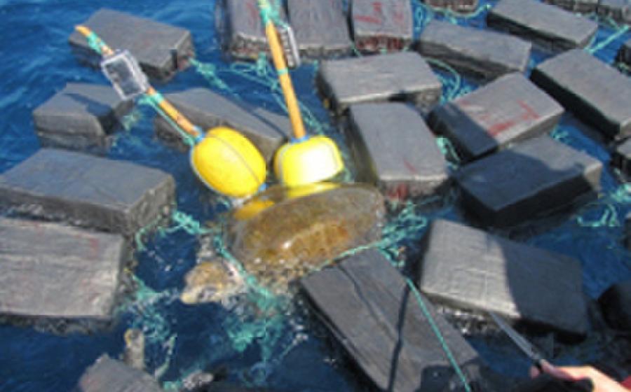 The crew aboard the U.S. Coast Guard Cutter Thetis made a startling discovery when it spotted an entangled loggerhead sea turtle caught amid $53 million worth of cocaine.
