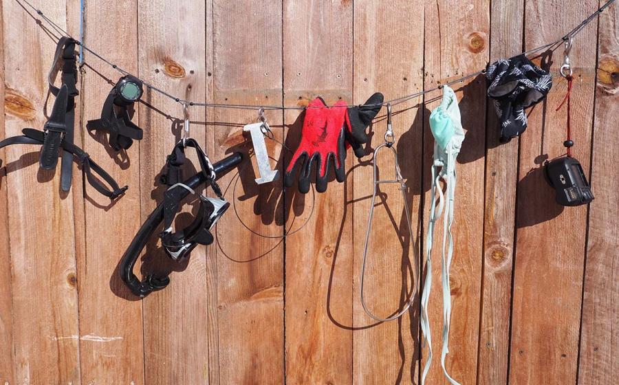 From bungee cords to concentrated soap, this is what you need to take care of your dive equipment while camping.