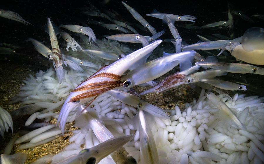 Divers witness a life and death melee in the waters of Monterey during the annual squid mating aggregation.