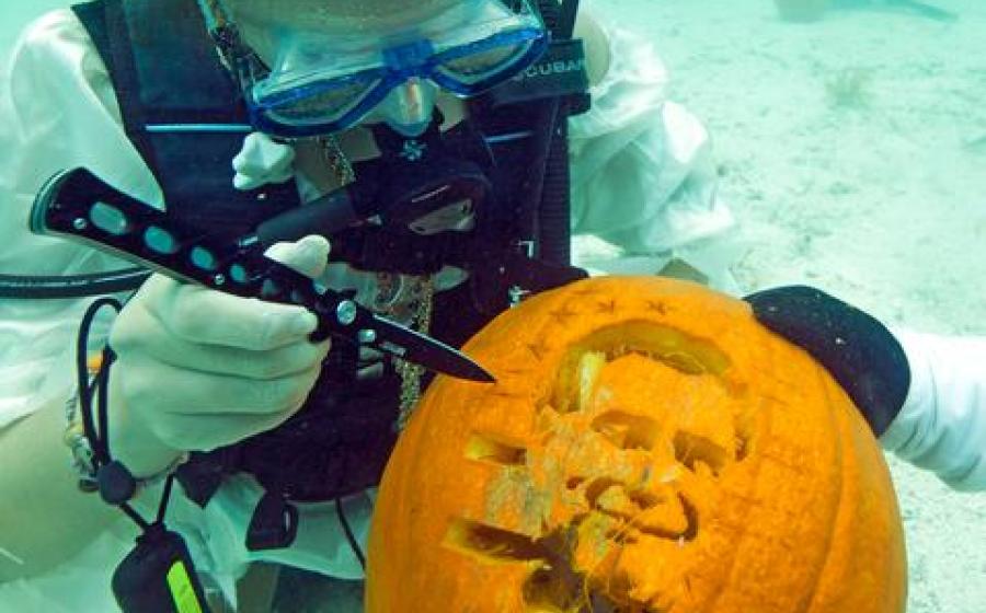 From underwater costume contests, to underwater pumpkin carving, to haunted wreck dives, there are so many ways to celebrate Halloween this year.