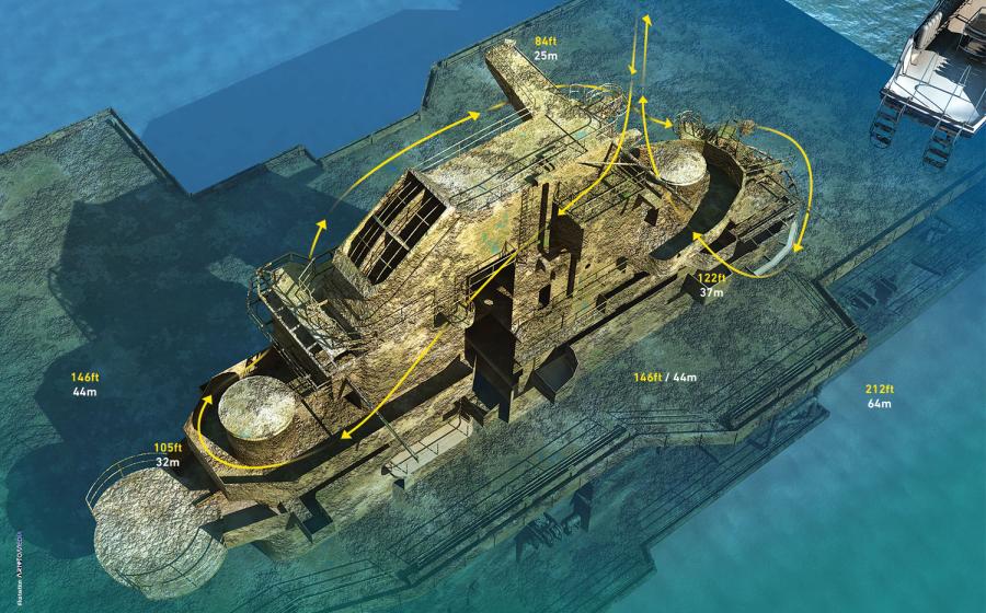 Using a map from ArtToMedia, we bring you the best dive profiles for penetrating the Mighty Oriskany shipwreck and tips for exploring the ship safely.