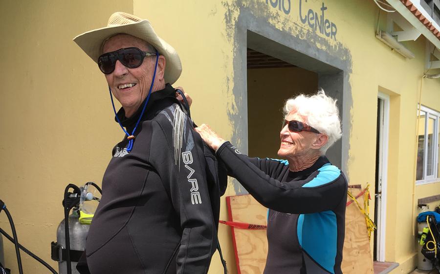 The world's oldest scuba diving married couple, 87-year-olds Phil and Grace Hampton, attempt trio of Guinness World Records for scuba diving in Bonaire.