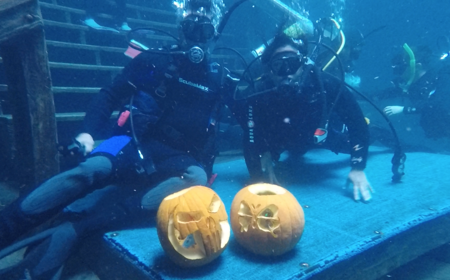 Carving a pumpkin while scuba diving is definitely harder than it looks. But it's also much more exciting than traditional topside carving.