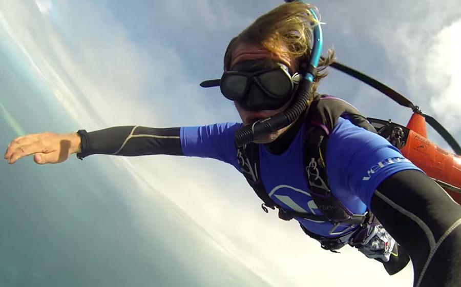 Watch this amazing footage of a skydiver turn scuba diver in the matter of minutes. This Australian diver has no fear!