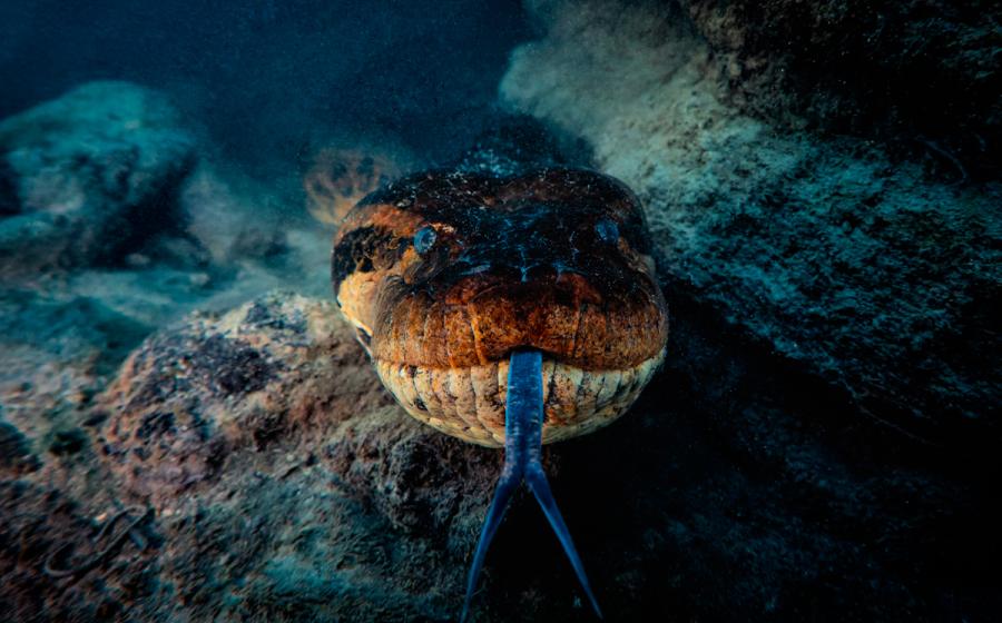 As a leading wildlife photographer, Leighton Lum has come eye-to-eye with some amazing animals above and below the water. The dive he’ll never forget involves scuba diving with a giant anaconda in Brazil’s Pantanal region.