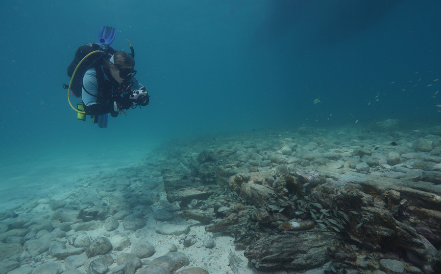 Hundreds of ballast stones were removed from the side of the shipwreck, exposing the wooden frames and planking of the *North America*. This will accelerate the ship’s degradation.