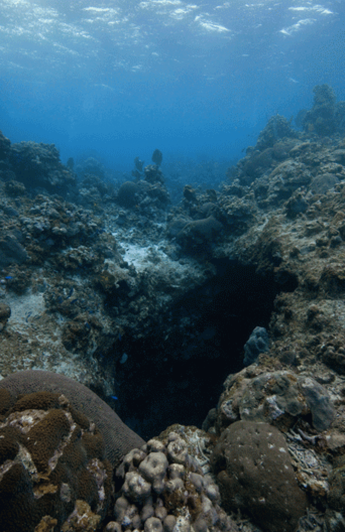 The reef and wall architecture at Hole in the Wall — with its exploration-worthy swim-though, shallow reef punctuated by coral heads and the occasional pinnacle or large coral mound — is typical of many sites off Eleuthera, including Tunnel Rocks, Cut-Through City, Jake's Hole, Split Coral Head and Cave Rock.
