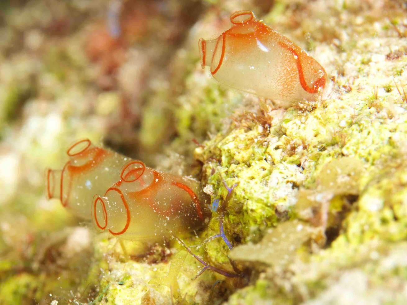 Here is a bulb tunicate on Exuma dive site Big Rocks. These filters of the ocean are named for the cloak-like tunics that support their saclike bodies.
