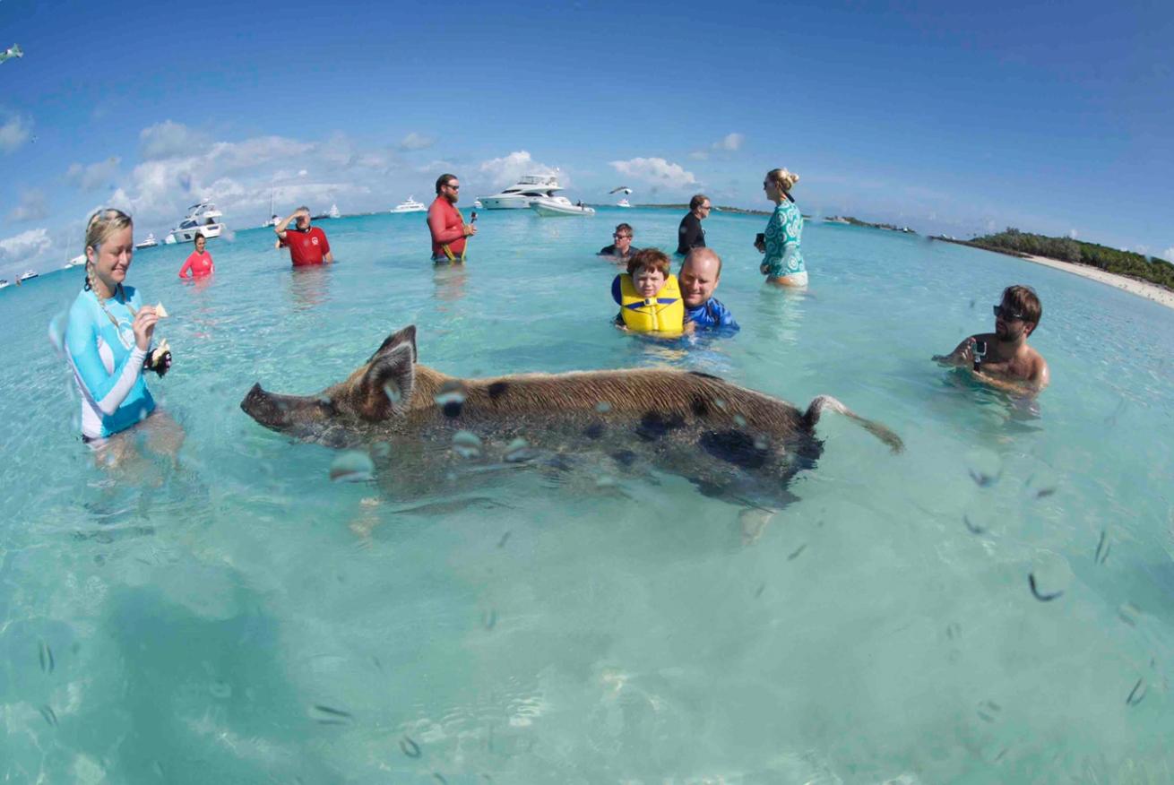 One of the things I love about being in the Bahamas is the diversity of what it has to offer. We made our way to a nice beach area just off Big Major Spot and swam with Pigs. Yes, that’s right. As guests entered the water near the beach, pigs would swim out to greet them in waist deep water, which for the pig was over their head. It’s a wonderful encounter that only few get to enjoy, as we normally only make it this far on our ten day charters, and this was a 7-day.