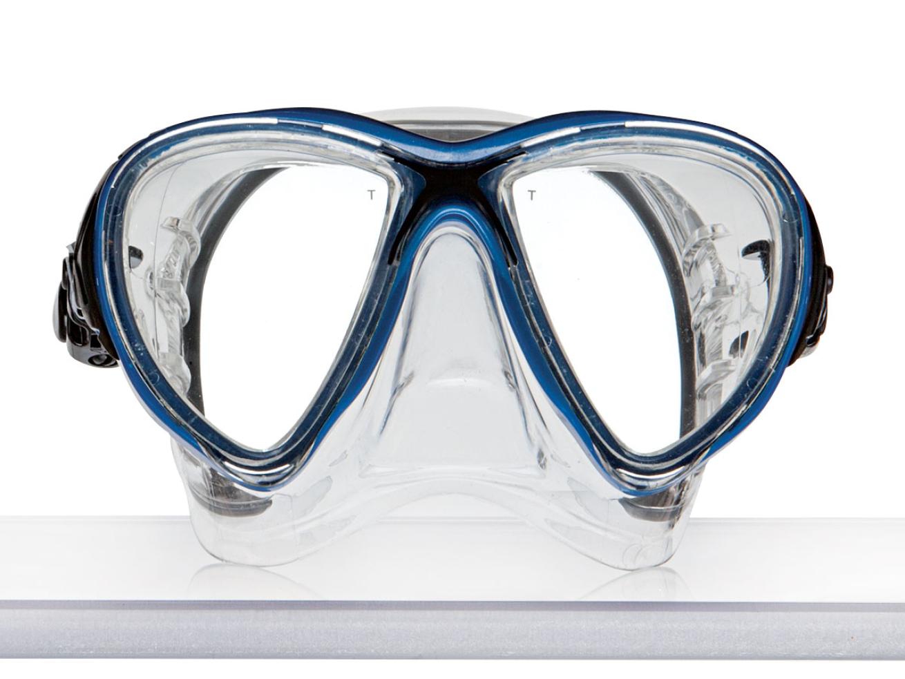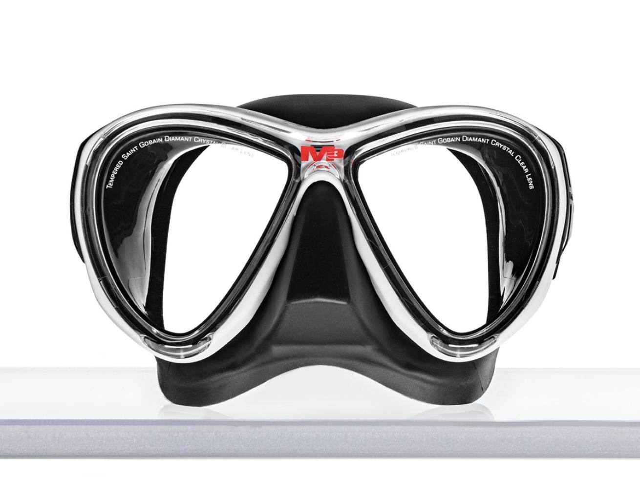 Chelsea PomalesThe large inverted-teardrop lenses of the M3 are made of a Crystal Clear glass with low iron content that allows higher light trans- mittance and reduced green tinting. The side panels of the silicone skirt have ribbing to maintain the proper shape, and the strap buckles both swivel and pivot to allow the most comfortable strap position.
