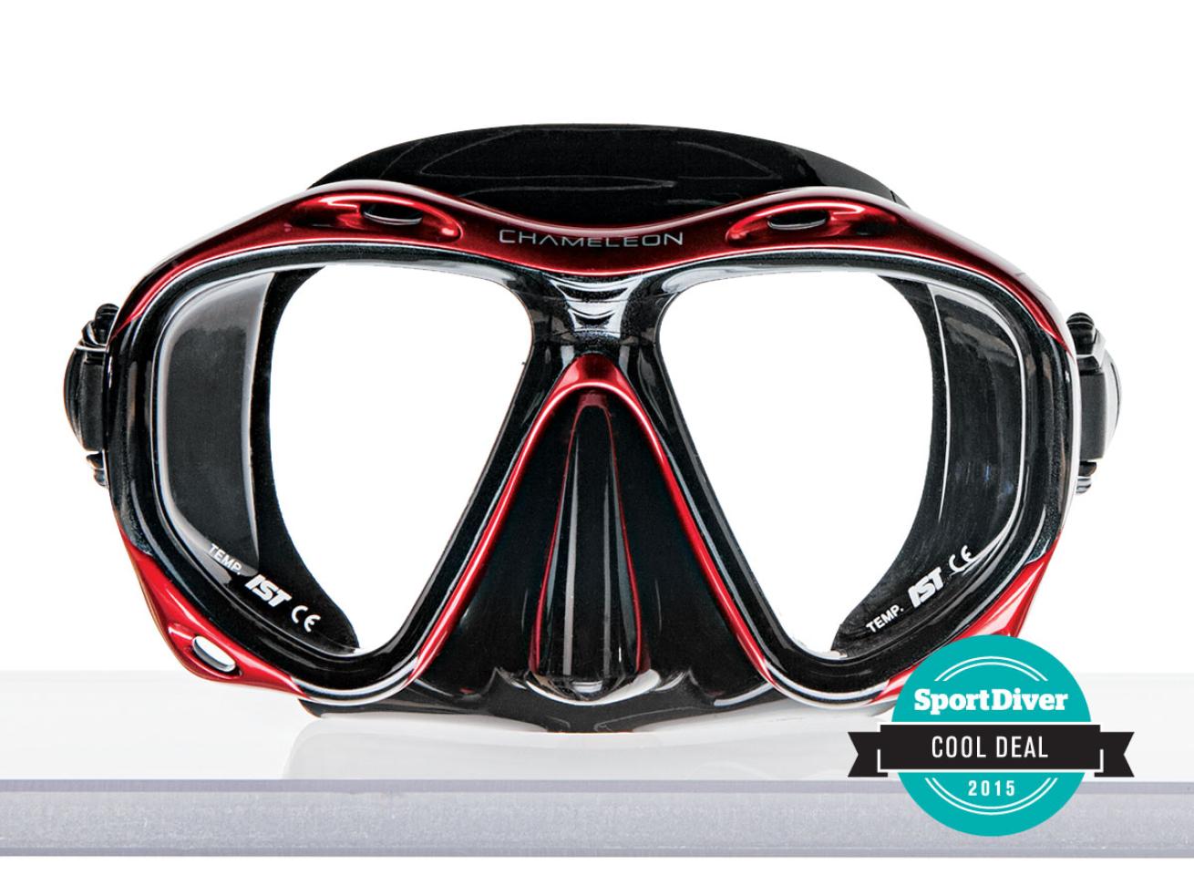 Chelsea PomalesWith its pliable liquid-silicone skirt with a wide sealing surface, the Chameleon is designed to provide a leak-free fit on a wide range of facial shapes and sizes. Like its namesake, it can quickly adopt a new look, with snap-on changeable trim pieces and optional clip-on optical lenses.