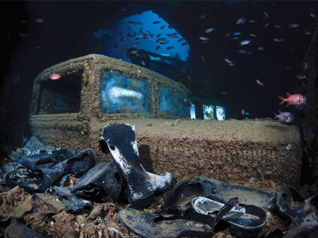 The most clamored-for dive in the Red Sea is also one of the greatest wreck dives in the world. A British supply ship in World War II, the Thistlegorm was bringing a cargo of much-needed supplies to Allied troops when it was spotted by German bombers and dispatched to the seafloor off the tip of the Sinai Peninsula. Never salvaged, it was eventually rediscovered by Jacques Cousteau and his Calypso crew. Today the ship stands as an undersea museum, its cargo holds still packed to the gills with Bedford trucks, BSA motorcycles, boots and rifles.