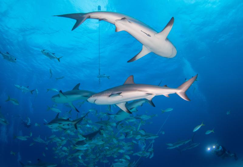 In the abyss, expect frequent traffic of pelagics, namely Caribbean reef sharks.In the abyss, expect frequent traffic of pelagics, namely Caribbean reef sharks.