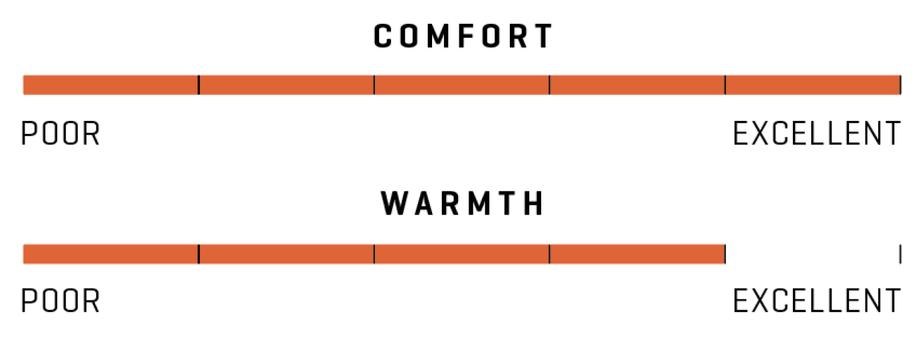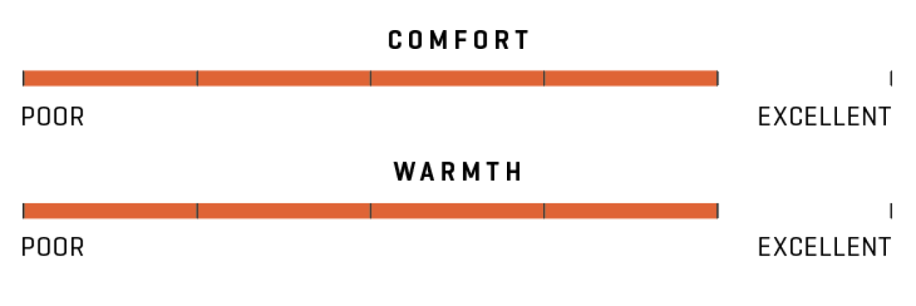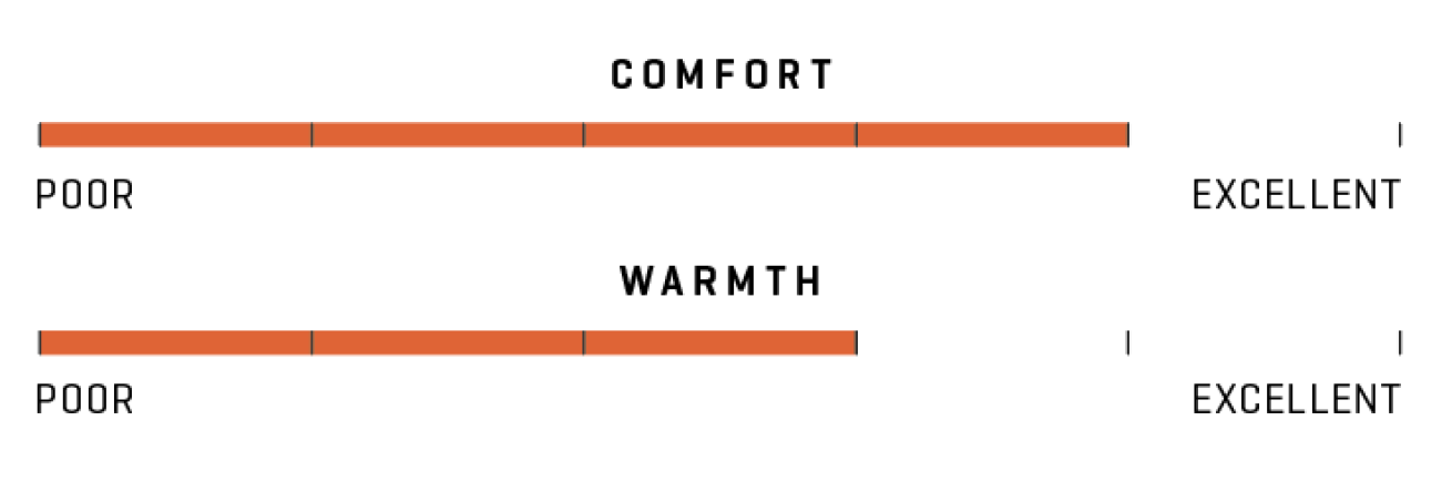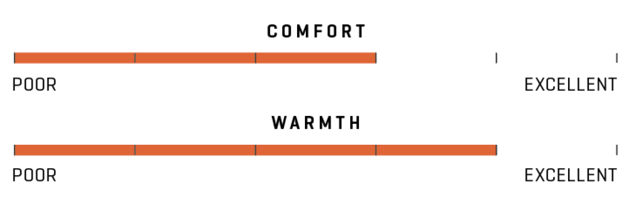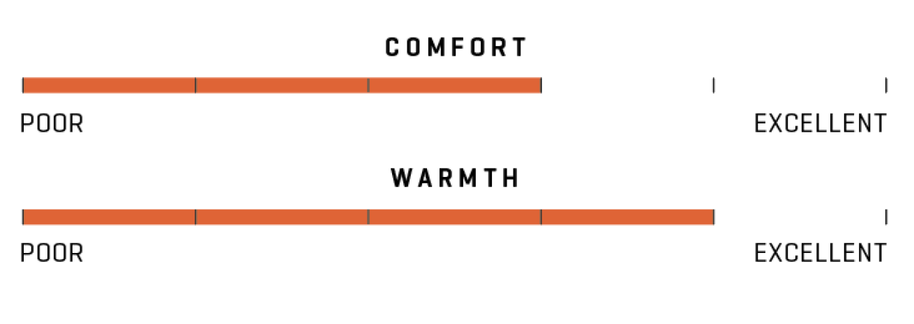 The bar graphs accompanying each review indicate that suit’s scores for comfort and warmth.