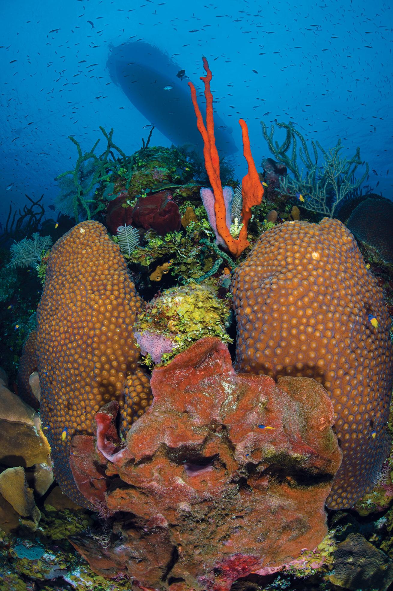 Take Kittiwake. You’d be hard-pressed to find a new artificial reef with better reviews than this 251-foot vessel off Grand Cayman’s Seven Mile Beach. It’s been an instant hit with divers, but because you’re on a liveaboard, you’ll have the luxury of multiple, relatively private dives here, plus the chance to explore the gorgeous nearby reef. Cayman Aggressor’s Capt. Lauren Hill confesses that she actually likes the reef even more than the wreck — it’s that good. I soon see why when I dive there: Fantastic formations rise 40 to 50 feet from the sand, draped with sponges and whip -corals, and pocked with openings onto long, lovely vistas.