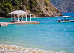 Blue Waters Inn is a beachfront resort tucked away in its own secluded bay amongst 46 acres of lush tropical grounds. It is located in Batteaux Bay, Speyside, Tobago.