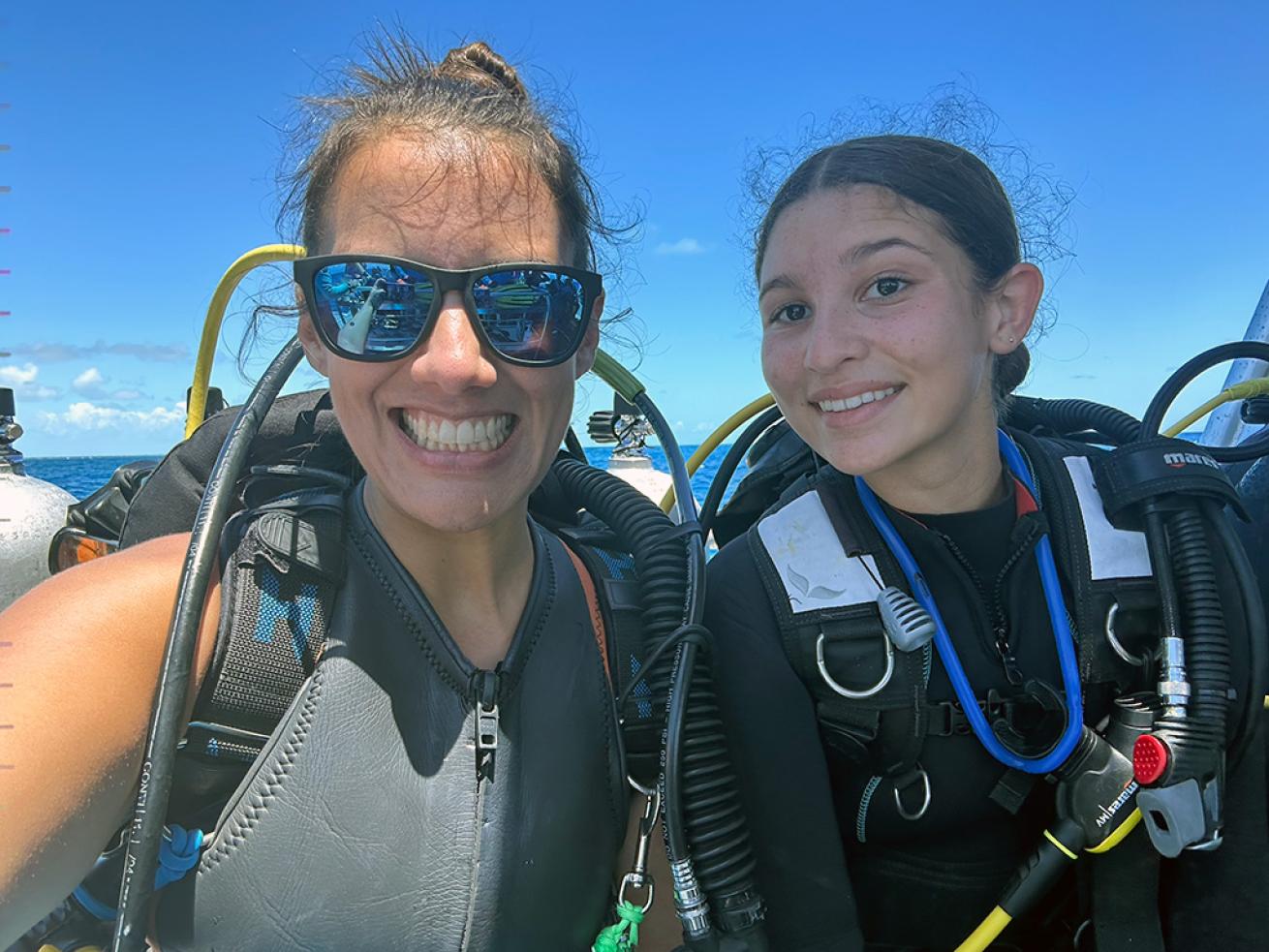 Kristin PaterakisThe author (left) and Rhyanna Risoli (right) pose during a surface interval onboard Key Dives