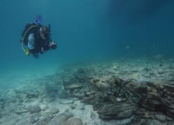Hundreds of ballast stones were removed from the side of the shipwreck, exposing the wooden frames and planking of the *North America*. This will accelerate the ship’s degradation.