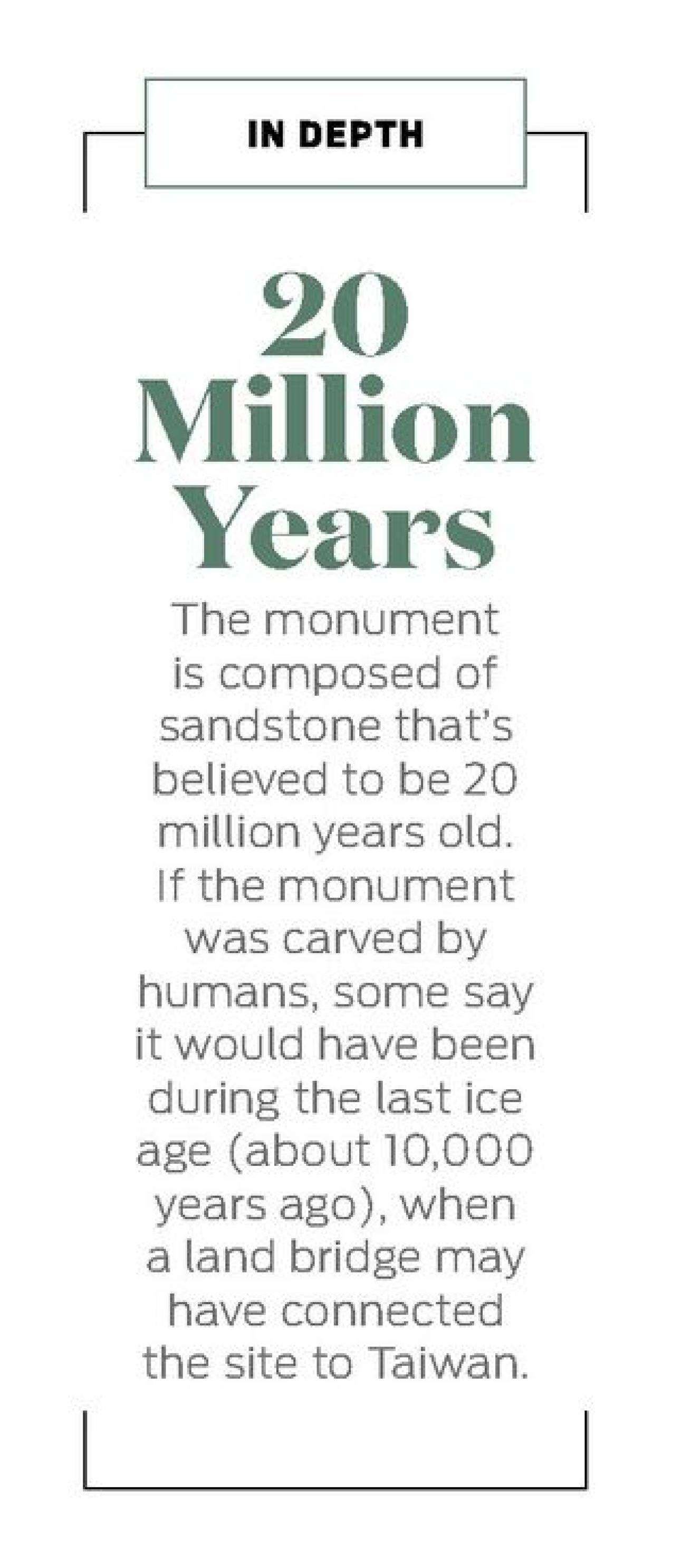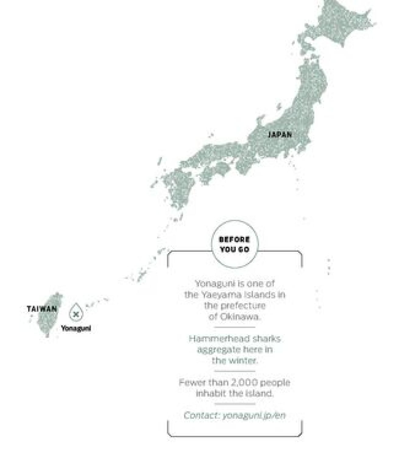 Yonaguni is a tiny, windblown sandstone rock barely jutting out of the Pacific Ocean, pretty much as far away from anything as you can possibly get. We make our way to the island in March — which we’re told is the best time of year to dive the monument. At the dive center is a 3-foot model, made of Styrofoam and painted gray, and employees show us exactly where to go to get the most out of the dive. They also explain what conditions to expect in different places.
