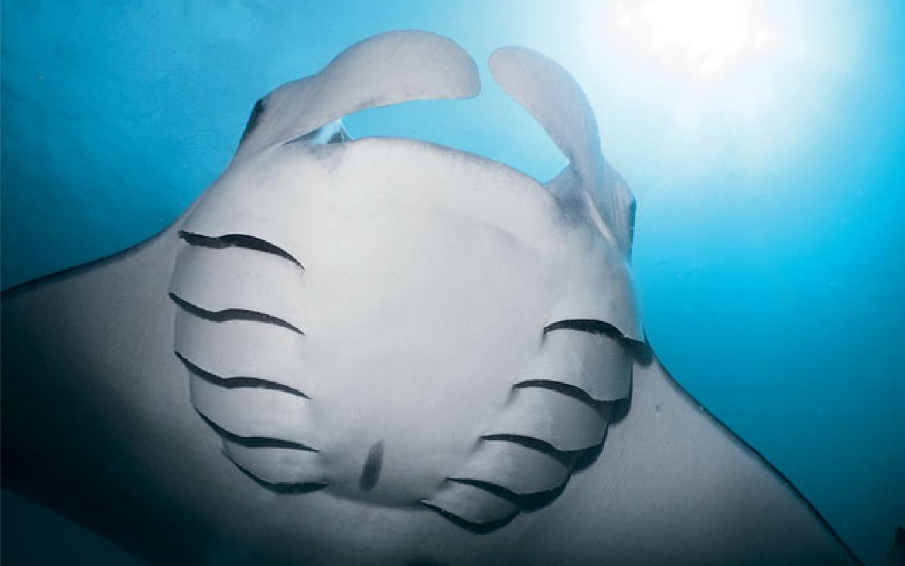 Manta rays are found off the Indian Ocean atolls of the Maldives.