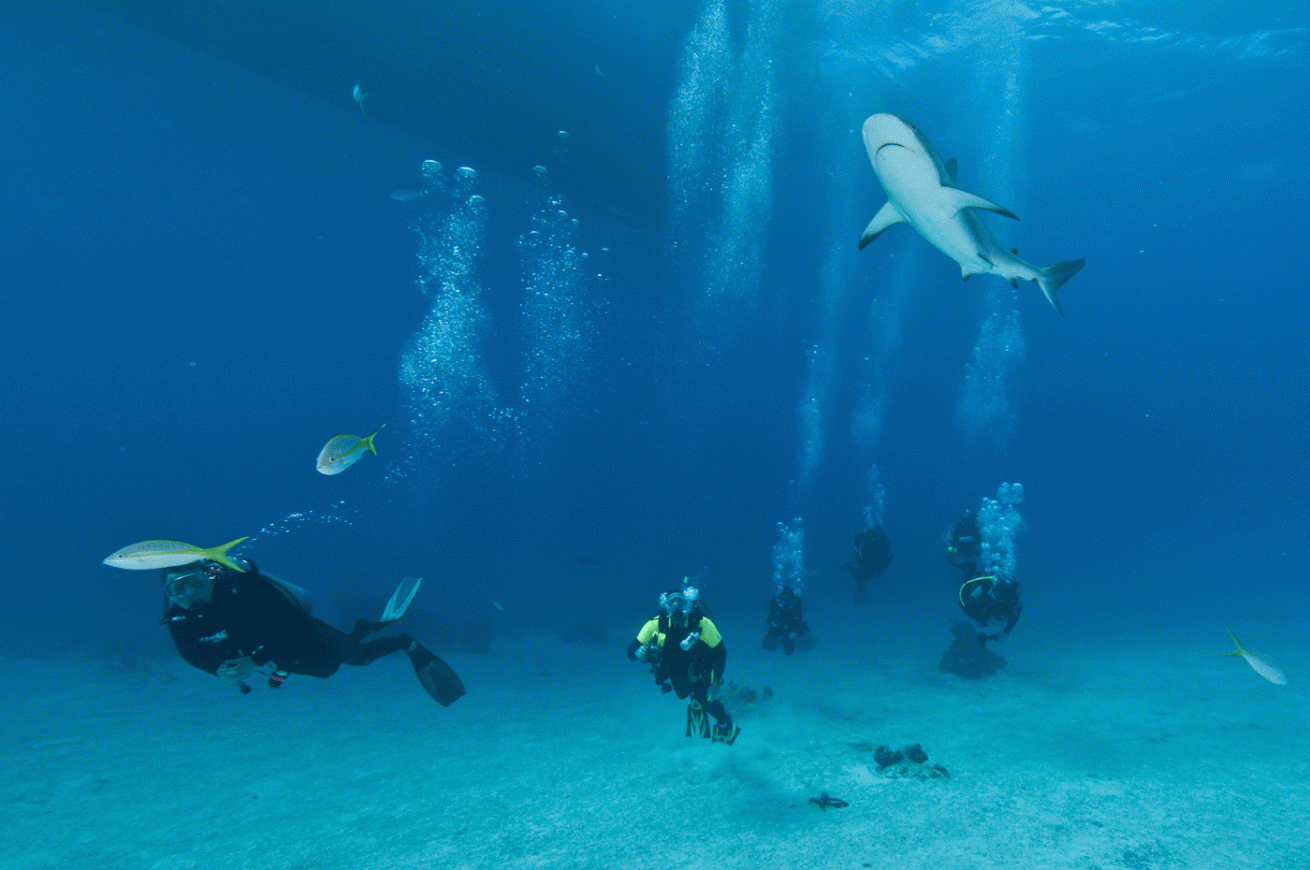 My name is Patricia Wuest and I am a Princess Diver. Yes, I admit it. Shape magazine recently reported that celebs like Jessica Alba, Sandra Bullock, Katie Holmes and Nina Dobrev of the CW show The Vampire Diaries love diving because it burns tons of calories while tightening and toning your body. You can debate whether diving actually does burn calories — PADI says 400 calories on a typical dive — but I typically prefer someone else burning those calories when I dive. Not only do I move very slowly underwater, I'd rather let someone else shlep my gear. The cliche often recited about live-aboard diving — eat, dive, eat, dive, eat, dive, sleep, repeat — is very true, but what's not mentioned is how lazy that routine is when the crew is as hard-working, helpful and fun-loving as the crew aboard the luxury live-aboard catamaran Aqua Cat. The spacious, 102-foot-long Cat departs from Nassau, Bahamas, year-round to pristine sites off the stunning Exuma Cays and Eleuthera. A blog can't really do this experience justice, but I'm gonna try.