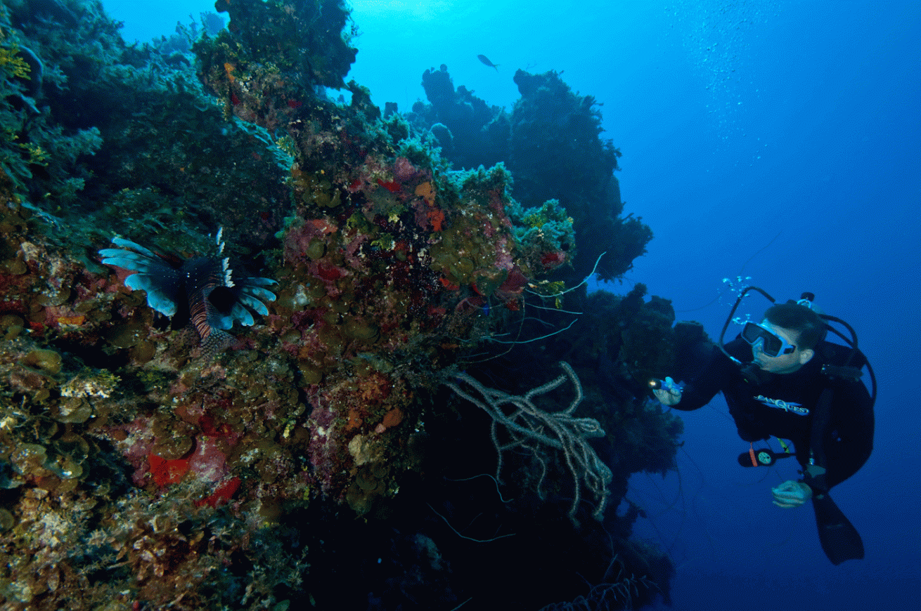 After the restful crossing (lots of catnaps on the Aqua Cat's spacious sundeck), our second dive is in the afternoon, at Hole in the Wall, which offers both a shallow reef with a huge coral mound (in 45 feet of water) or a wall dive that can be accessed via a good-size swim-through in the reef at 70 feet that you can drop down into. When you exit, you're on the wall at about 90 feet. Out in the blue, you have the chance to spot just about anything, though turtles and eagle rays are the most common encounters. Two weeks after we left, I got an email from Aqua Cat's photographer, Aleksandra Bartnicka (some of her work is featured in the photo gallery above), who said they had an in-water encounter with a whale shark and a humpback whale. Drats! As Capt. Mark Bailey told me, "You never know what you might see on any given day — turtles, sharks, whales, dolphins." Trust me, this crew is so happy and dedicated because they truly love diving and the work they're doing.