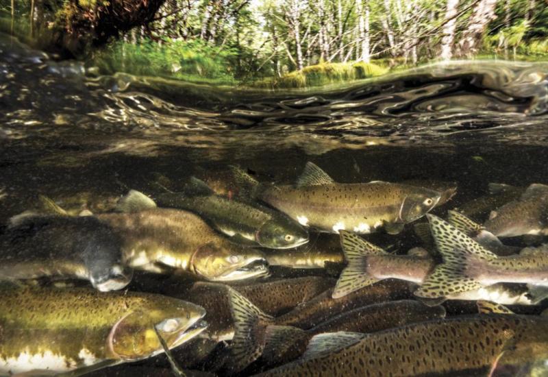 Whoa—looks like we may have mistimed slack tide here! The whole of Southeast Alaska’s inside passage drains into the open Pacific through this aquatic gap in the gargantuan geologic terrane wreck, the moon and sun doing their water-level best to match the drama of the surrounding scapes with their current events. We drop a touch deeper, past carpets of countless critters with arms waving wildly to gobble up the passing planktonic picnic. Eventually, the only productive play is to rejoin the shallow thickets of understory kelps and grab on—bull kelps bending at the holdfast to flow almost horizontally and billowing over the bushy, blustery benthos. Everywhere all around us is life being lived right on the edge of calamity, thriving through whatever storm the sea, sky and soil can throw at it. This reef has seen some things.