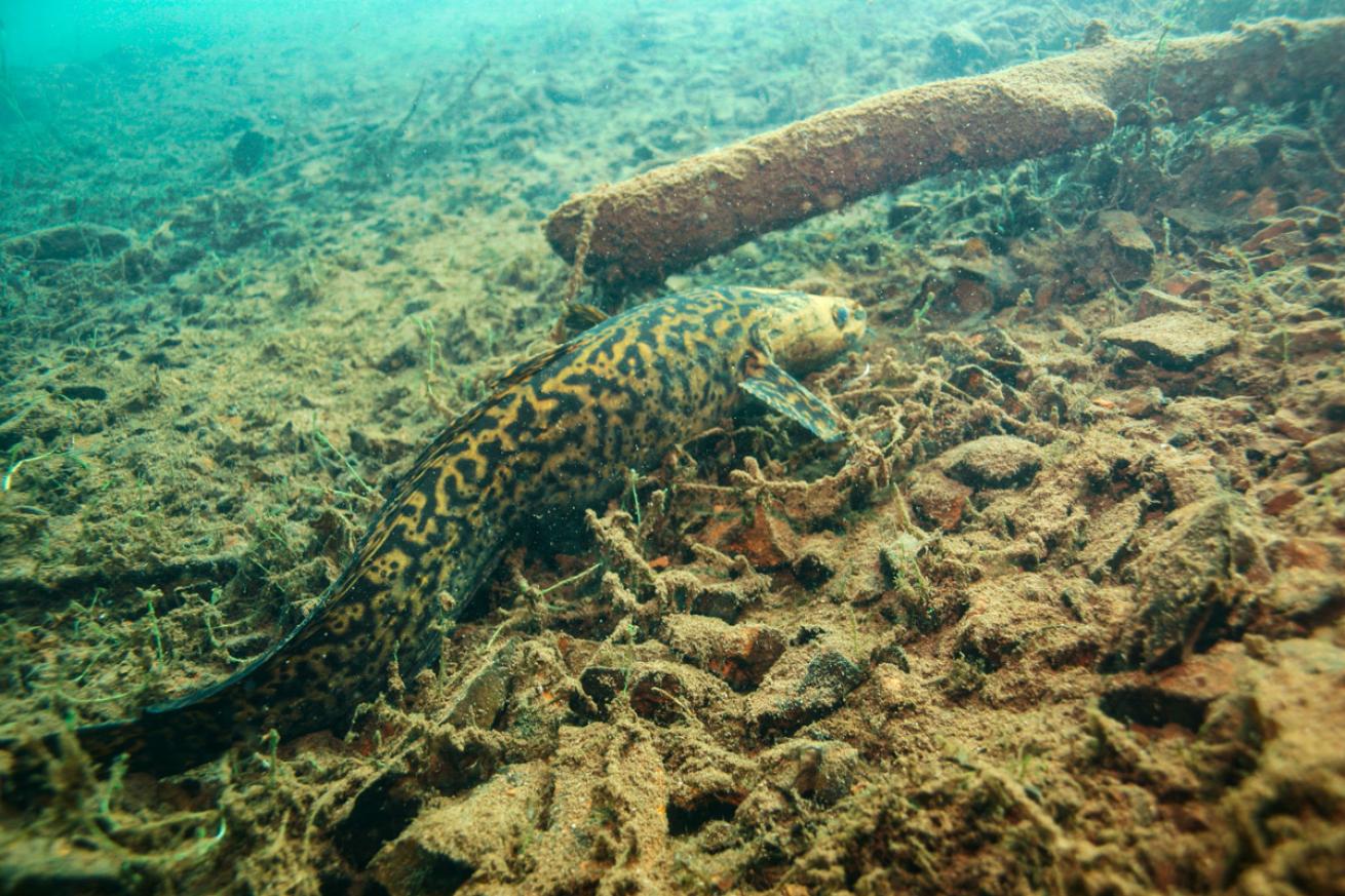 Divers may spy an unusual creature when descending into the mines—and no, we’re not talking about Jason Voorhees. The common loon (Gavia immer) is Minnesota’s state bird. Loons can be spotted beneath the surface on the hunt for fish. Their beady red eyes stand out from their satiny black heads, guiding their speckled bodies through the water. Loons are heavier and more skillful swimmers than other birds in northern Minnesota, where their breeding numbers are greater than pretty much anywhere else outside Alaska. Their unusual solid skeletal structure enables them to dive down more than 100 feet, giving them a legendary status among the divers who encounter them while exploring the mines.