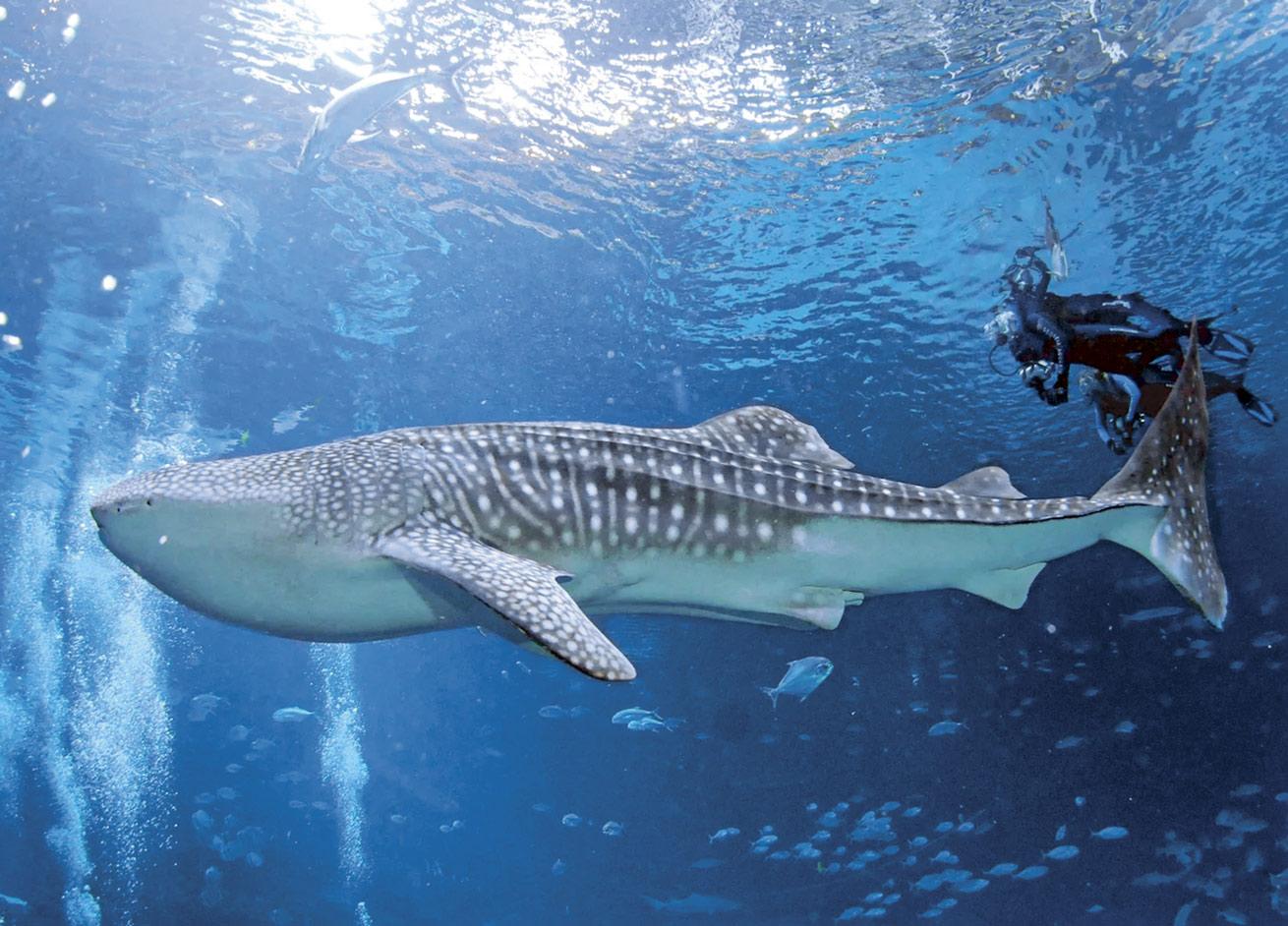 Courtesy Georgia AquariumDivers watch as a whale shark swims by