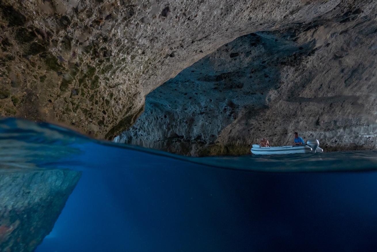 Topside, the island is small enough to be explored by an ATV. (Book in advance of your trip, especially if you are going at peak season from June to September.) Take a catamaran tour of the island by sea; you’ll enjoy the camaraderie of friendly Greek sailors and traditional cuisine while getting a new perspective of the island only accessible by boat. (Think: picturesque fishing villages, pirate coves and absolutely stunning geological cliffs.) Stay in a villa near the quaint beach of Pollonia or a traditional syrma fishing home if you want to wake up to the sea at your doorstep.