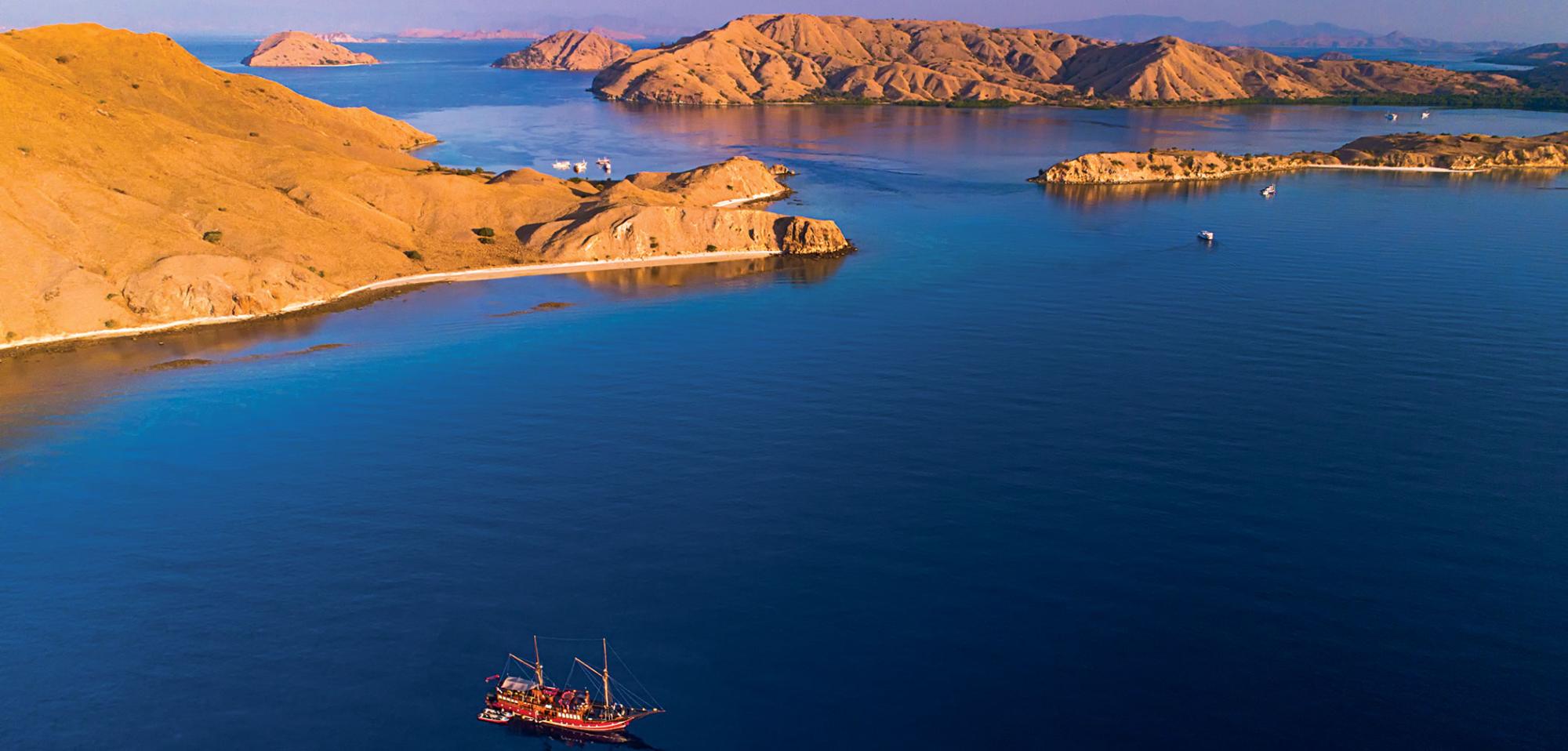 Operator: Arenui is a 140-foot classic Indonesian-style wooden vessel, with a 30-foot beam. The boat is hand-crafted from 12 types of wood — much of it recycled and locally sourced. The decor reflects local Indonesian culture, with a carving on the stairs depicting the Hindu Ramayana story, and each room featuring local art and themes. The ship’s beautiful design is outdone by the crew’s service, including five meals a day with ample options, and a complimentary 30-minute massage.