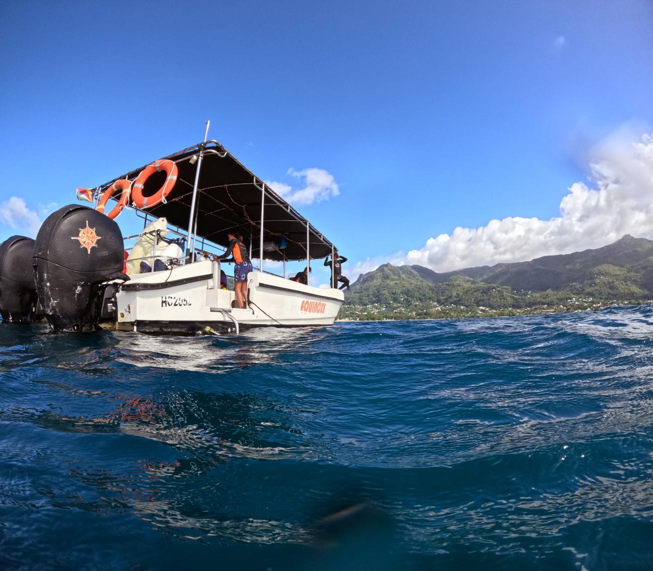 L’ilot is an island around half a kilometre away from Mahe, easily accessed from Beau Vallon and ideal for both beginner and advanced divers. It’s a tiny island made of granite, with a few palm trees peeking out, that you can dive the circumference of in one go. The boulders and rocks that form the island make up underwater arches and swim-throughs, and commonly seen species include turtles and dolphins; however, it’s particularly well known for whale sharks, the season for which is from September to November.